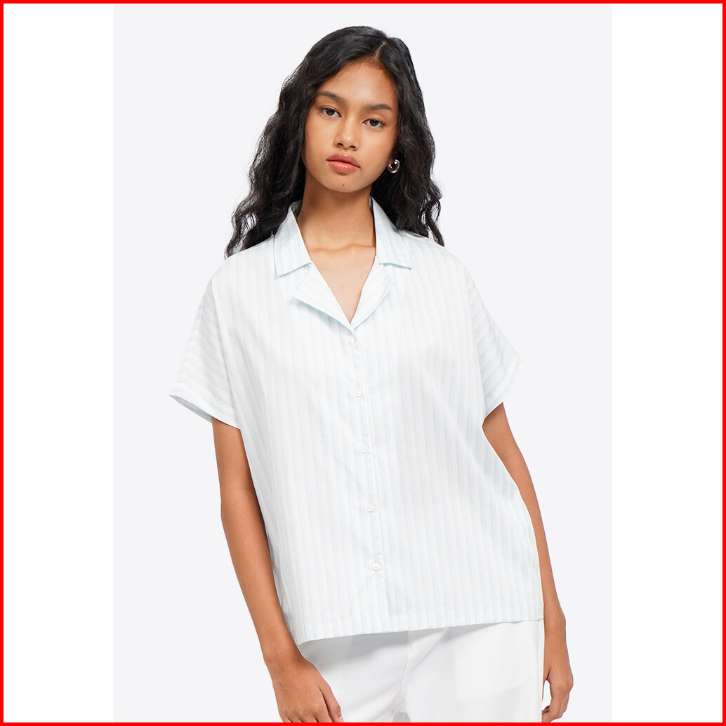 Colorbox Striped Pajama Collar Blouse Multicolor