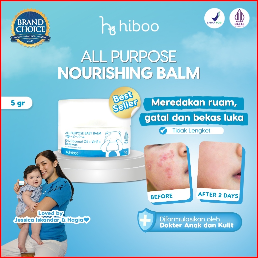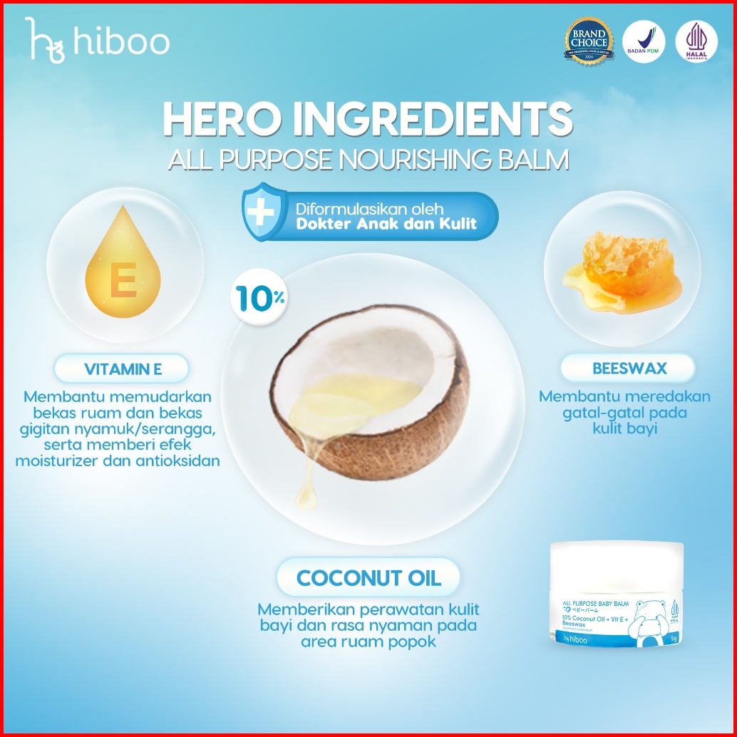 Hiboo All Purpose Baby Balm 5g Travel Size With 10 Coconut Oil Vit E Beeswax - Natural Nourishing Calming Moisturizer -