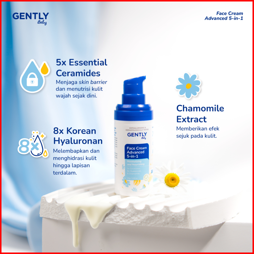 Gently Baby Face Cream Advanced 5-in-1 Dengan 5x Ceramide Dan 8x Hyaluronan