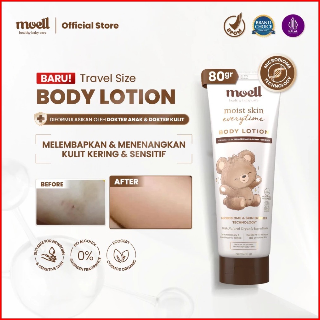 Moell Moist Skin Everytime 80gr 185gr Moel Body Lotion Bayi Natural Organic Lotion Pelembab Kulit Baby Aman Utk Kulit Se