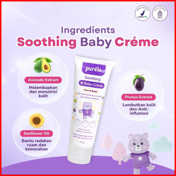 Purela Soothing Baby Cream Skincare Anak Pelembab Pemutih Wajah Menghilangkan Bekas Luka