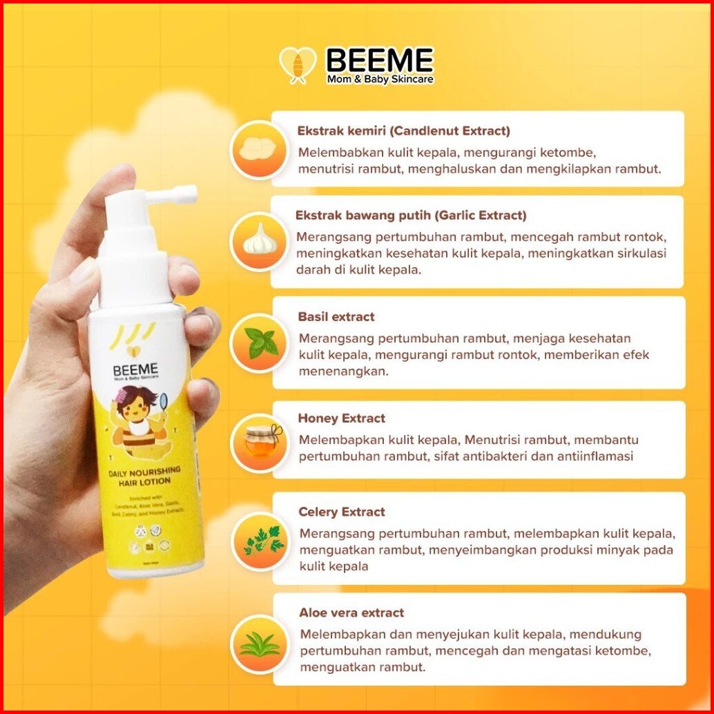 Beeme Daily Nourishing Hair Lotion 100ml - Bantu Melembutkan Merawat Rambut Bayi Tetap Sehat Bpom