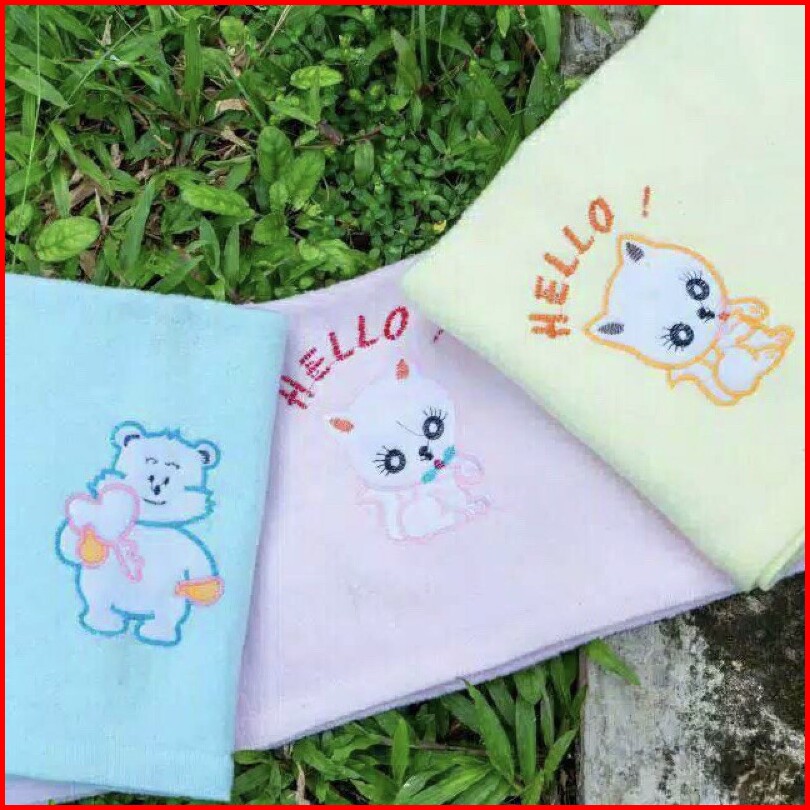 Handuk Bayi Ivory Bordil 120x60cm Bordir Bahan Katun Polly Semi Kapas Halus Mudah Menyerap Air