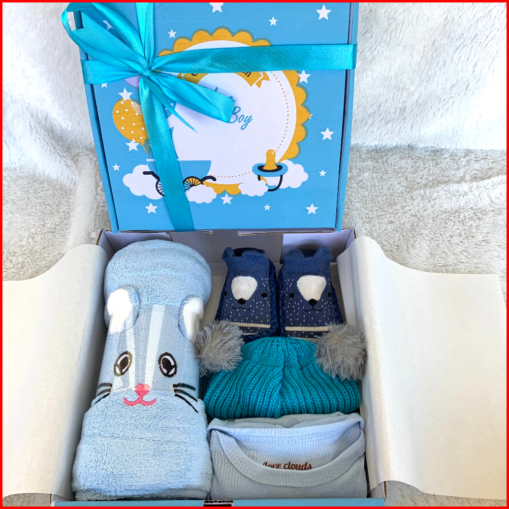 Pilih Box - Gift Box Baby - Kado New Born - Kado Bayi - Baju Handuk Topi Sepatu Bayi - Paket Hadiah Bayi - Hampers Baby