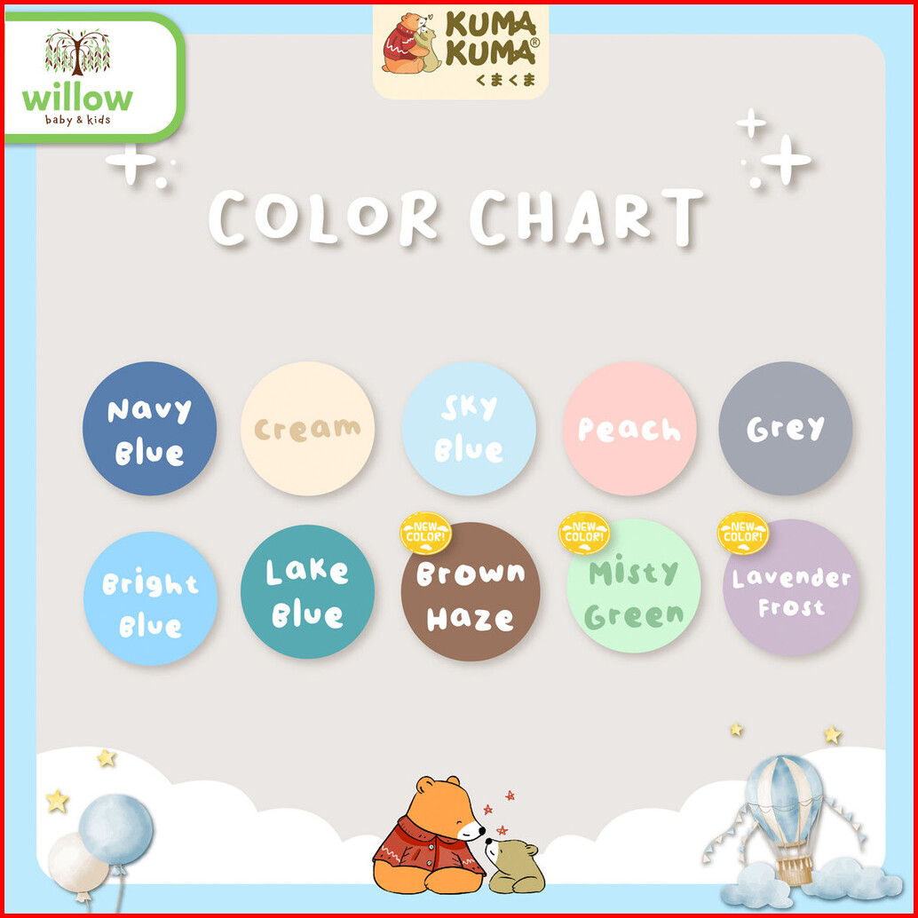 Bright Blue, Brown Haze, Cream, Lake Blue, Lavender Frost, Misty Green, Navy Blue, Sky Blue