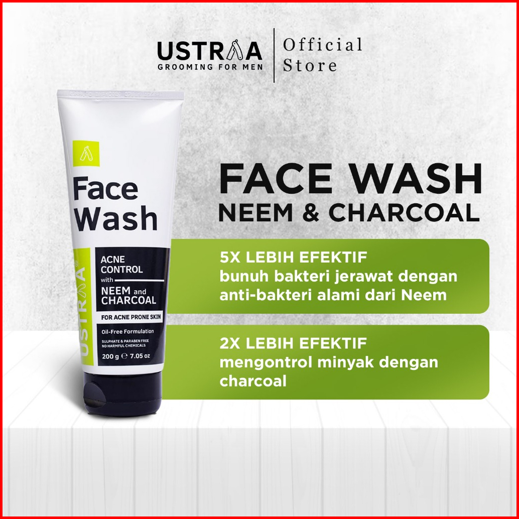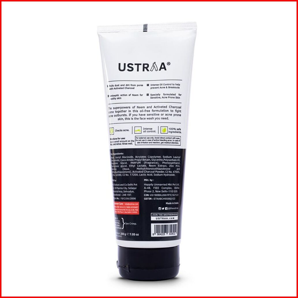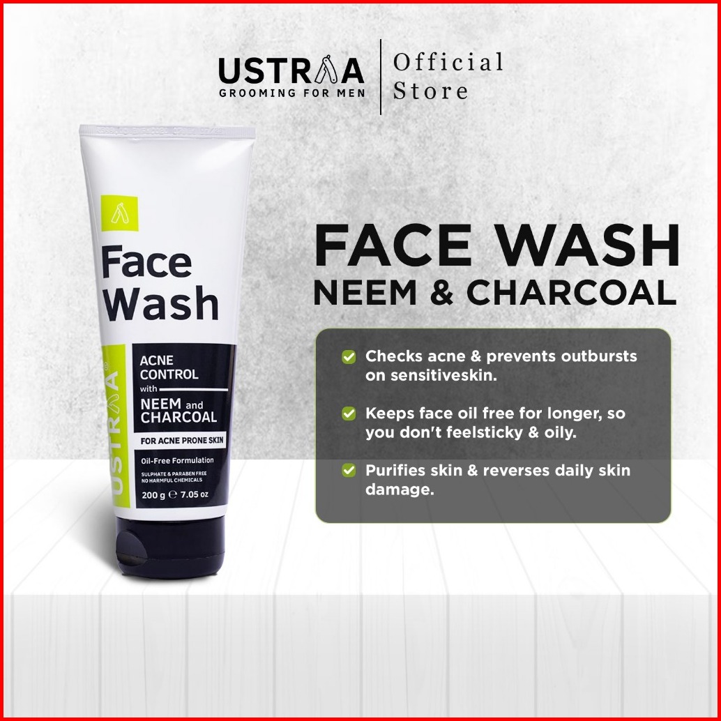 Ustraa Face Wash Neem Charccoal 200gr-facial Wajah Berjerawat Dan Berminyak
