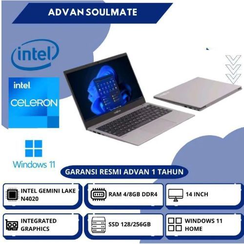 LAPTOP ADVAN SOULMATE | INTEL N4020 | RAM 8GB 128GB EMMC | INTEL UHD | 14INCH HD | WIN11 RESMI BLACK