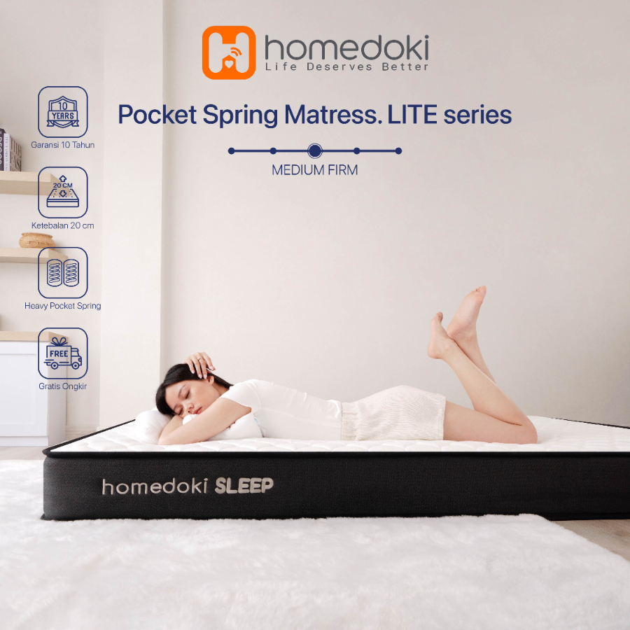Homedoki LITE Series/Kasur Pocket/Kasur Spring Bed/Matras Kasur/Tebal 20cm/Spring Bed 180x200