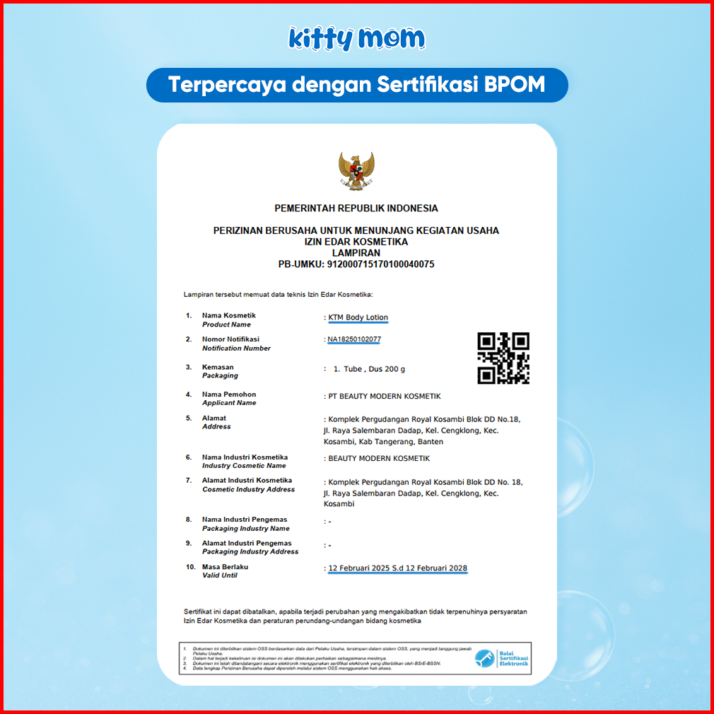 Kitty Mom Baby Body Lotion Handbody Skincare Bayi Newborn Bpom Pelembab Kulit Kering Sensitif Body Care Perawatan Kulit