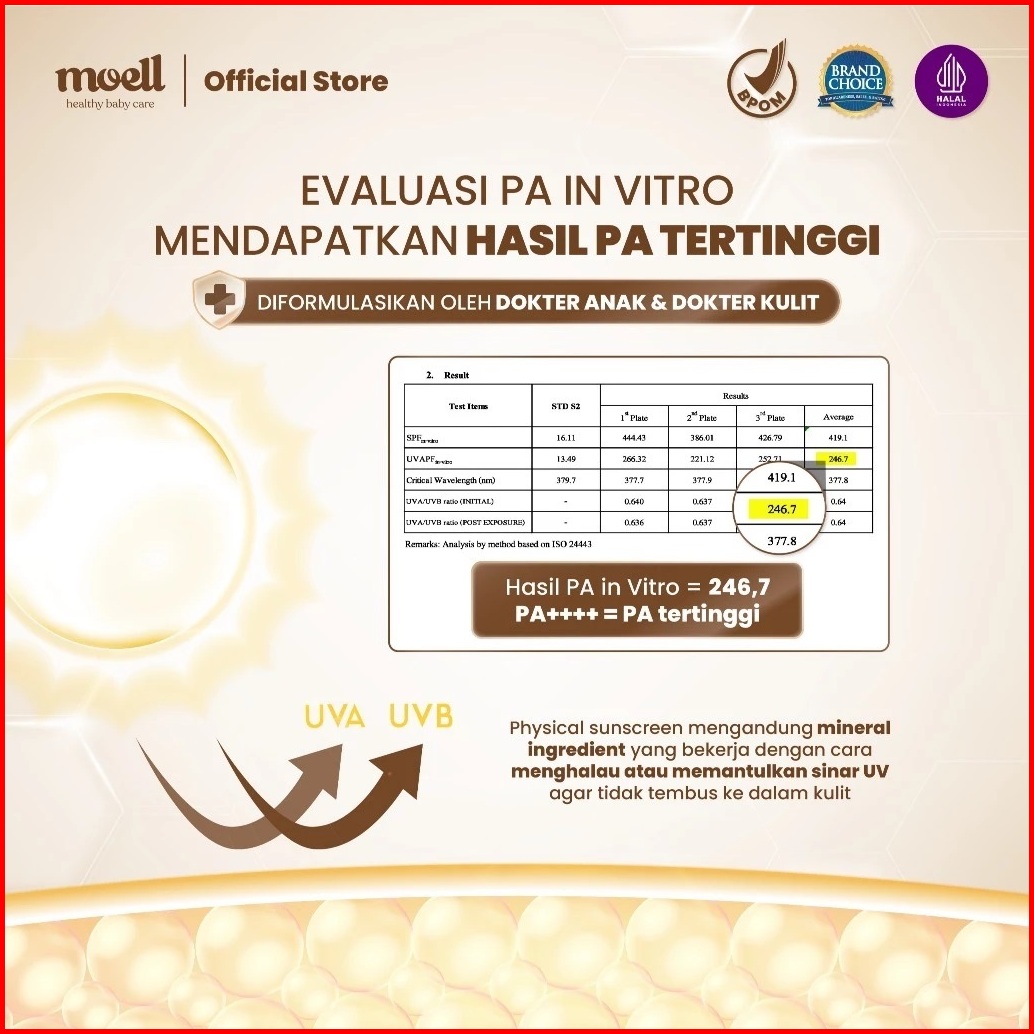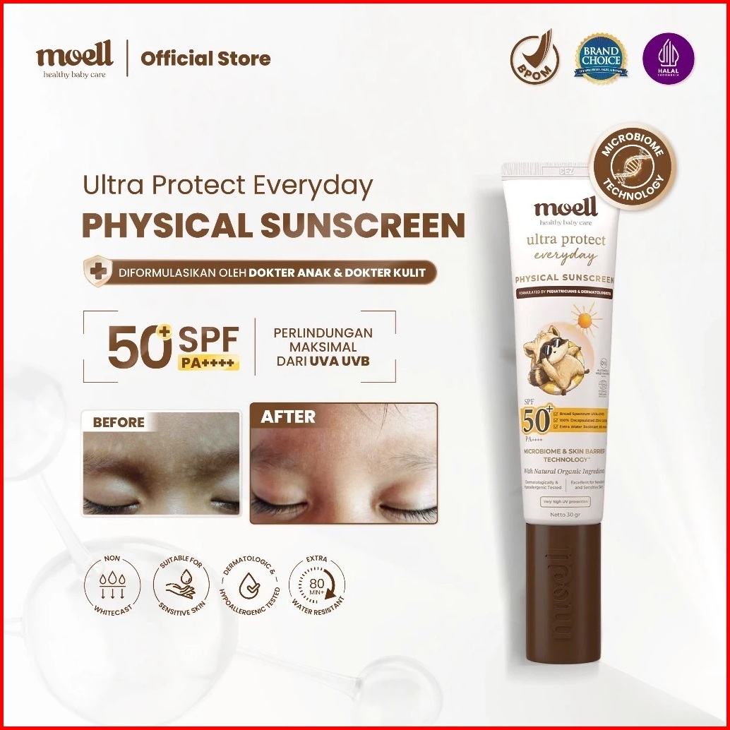 Moell Physical Sunscreen Anak Dan Bayi Spf 50 Pa Water Resistant Anti Uv Shield Baby Sunblock