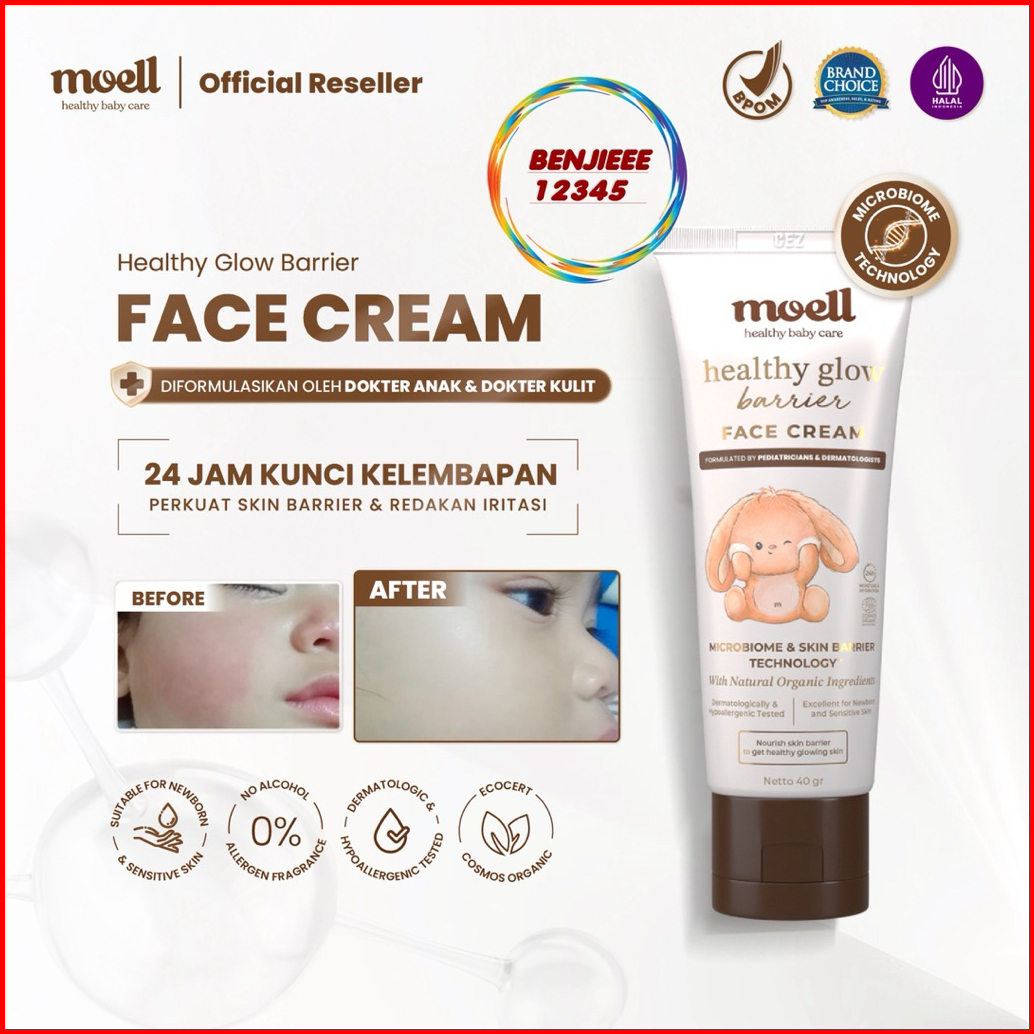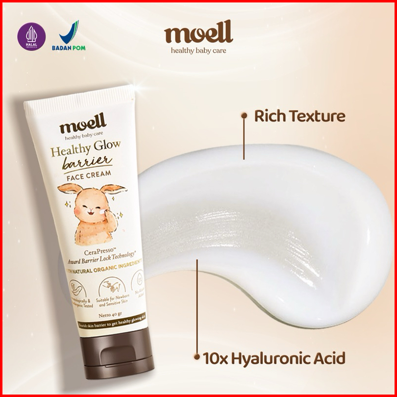 Moell Face Cream 40ml Healthy Glow Barrier Face Cream Pelembab Wajah Bayi Anak Plant Based Probiotics Suitable For Sensi