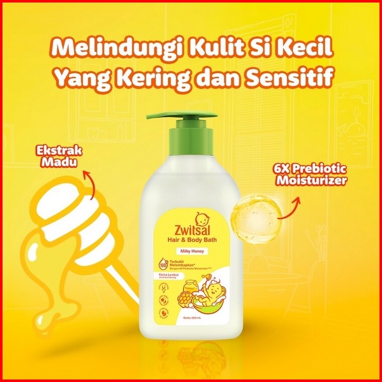 Zwitsal Baby Bath Hair Body - Milky Honey 300 Ml