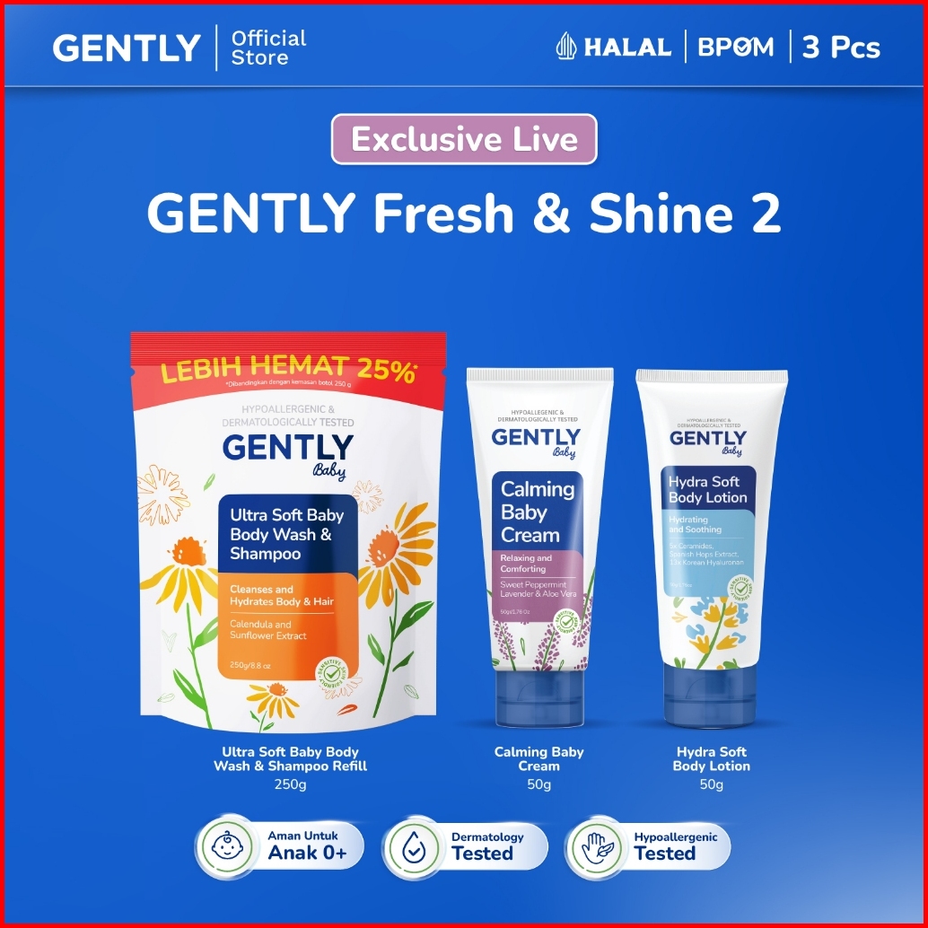 Exclusive Gently Baby Fresh And Shine Paket Calming Baby Cream 50 G Krim Bayi Nyaman Untuk Si Kecil Ultra Soft Body Wash