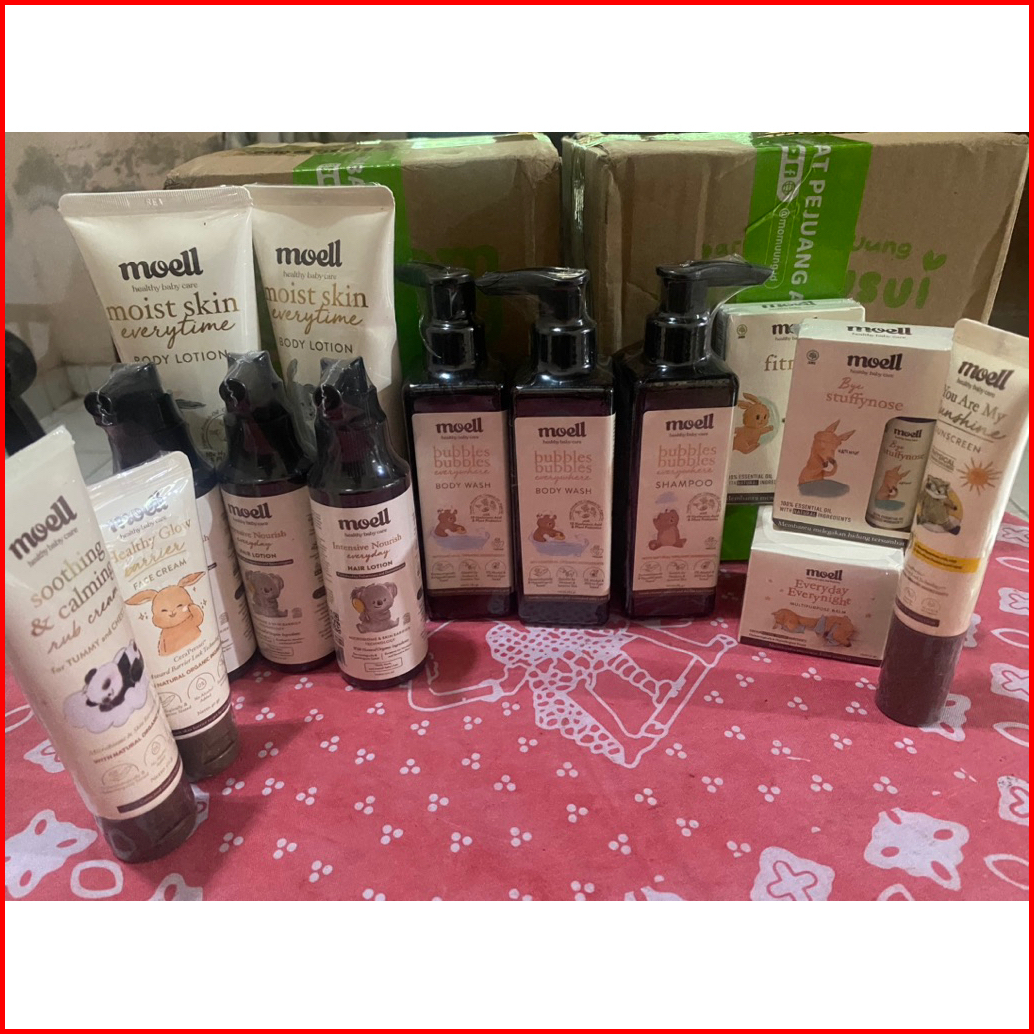 Special Bundling Promo Moell Skincare Rutin Baby Moell Body Lotion Face Cream Body Wash Moell Hair Lotion Shampoo Body W
