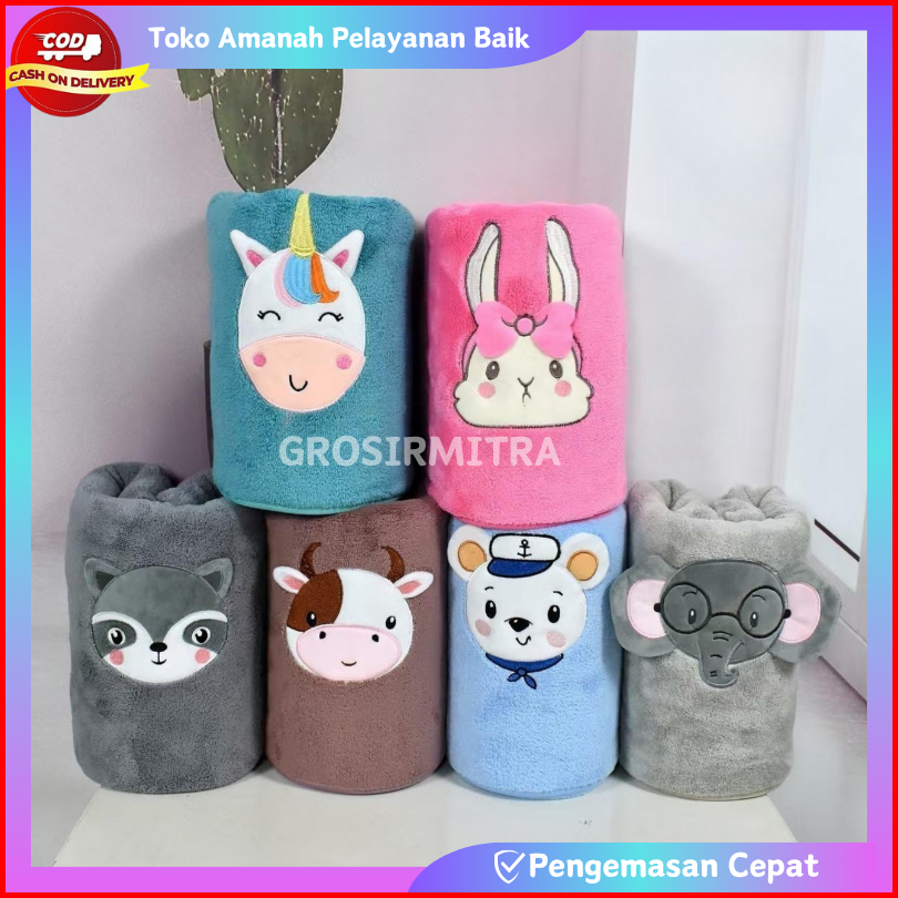 Handuk Mandi Bayi Anak Microfiber Lembut Menyerap Kamar Mandi 50x100 Tanduk Kids Terang Ruby