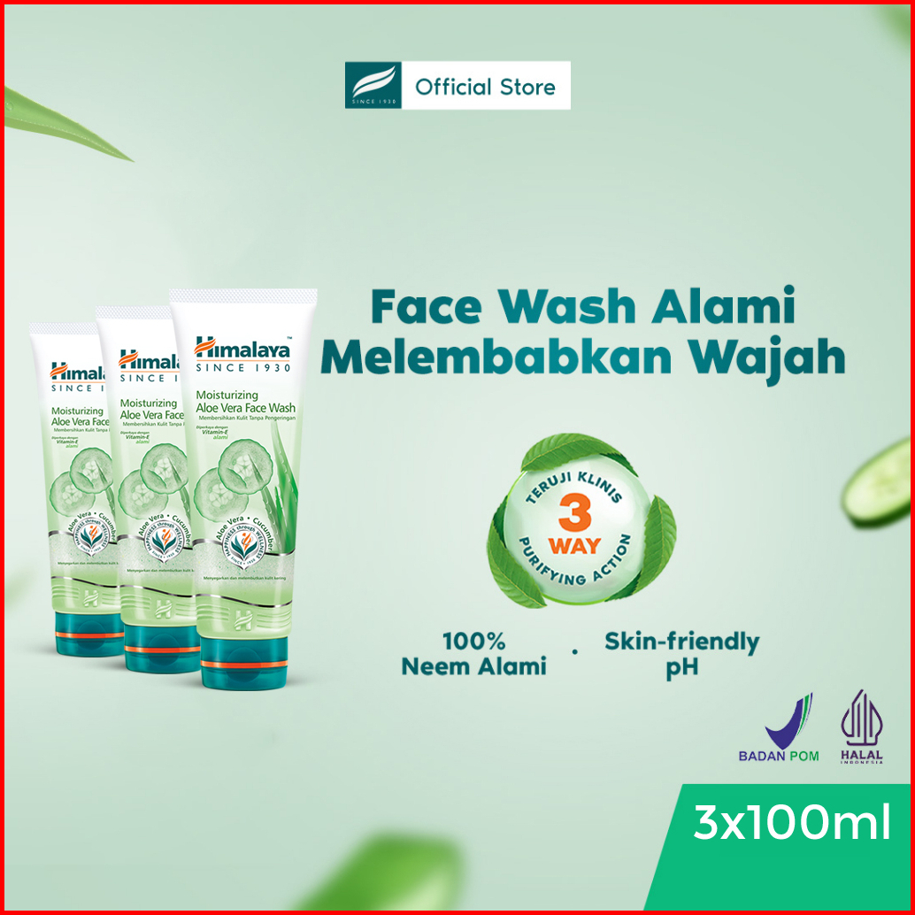Paket Hemat Isi 3 Himalaya Aloe Vera Face Wash 3x 100ml - Sabun Cuci Muka Pembersih Lidah Buaya