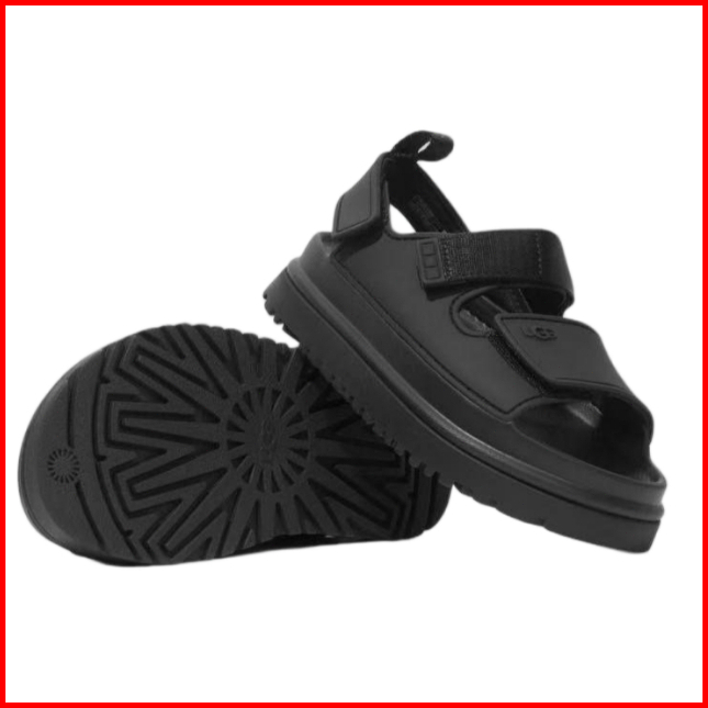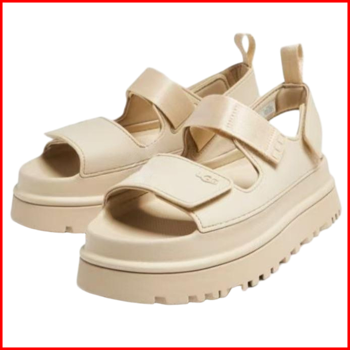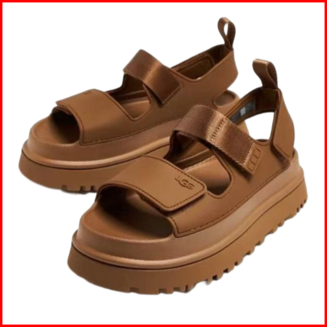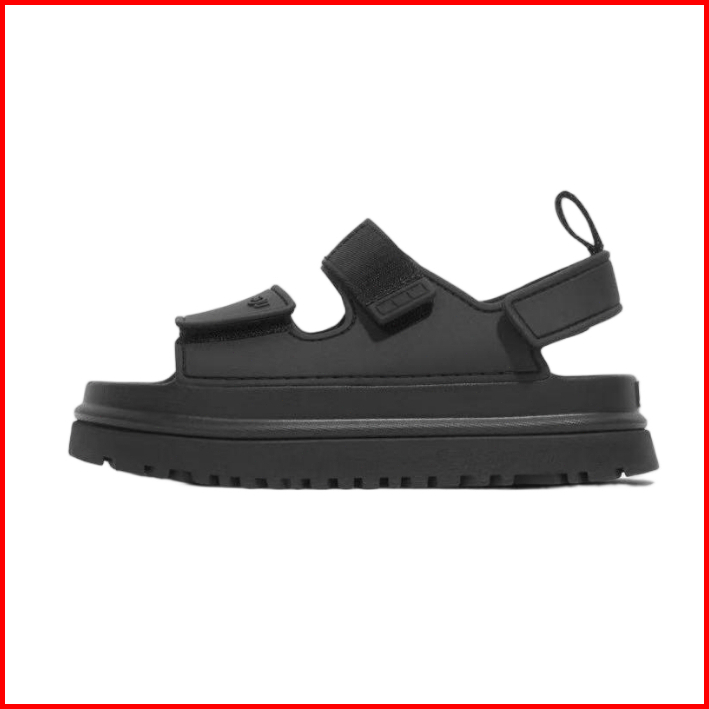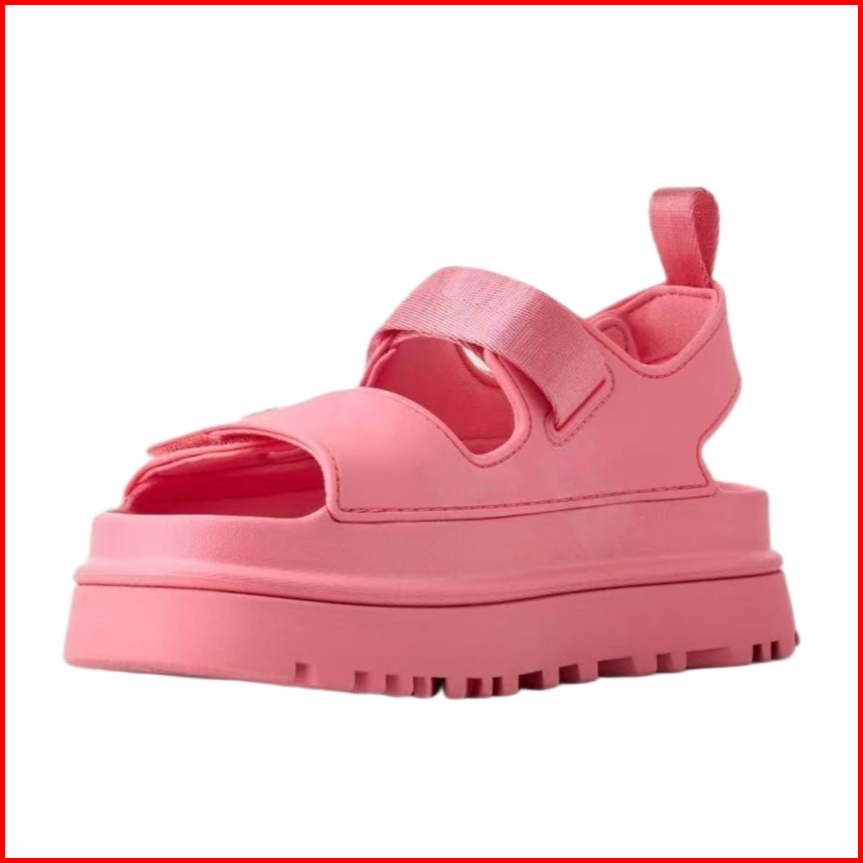 Sandal Wanita Ugg Berujung Terbuka Dengan Tali Velcro Sol Platform Hitam Gesper Anti Selip Gaya Sehari-hari Yang Nyaman