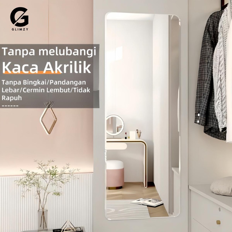CERMIN FULL BODY GANTUNG AESTHETIC DINDING TEMPEL TEBAL PERSEGI PANCANG KACA AKRILIK MINIMALIS 3D ANTI PECAH