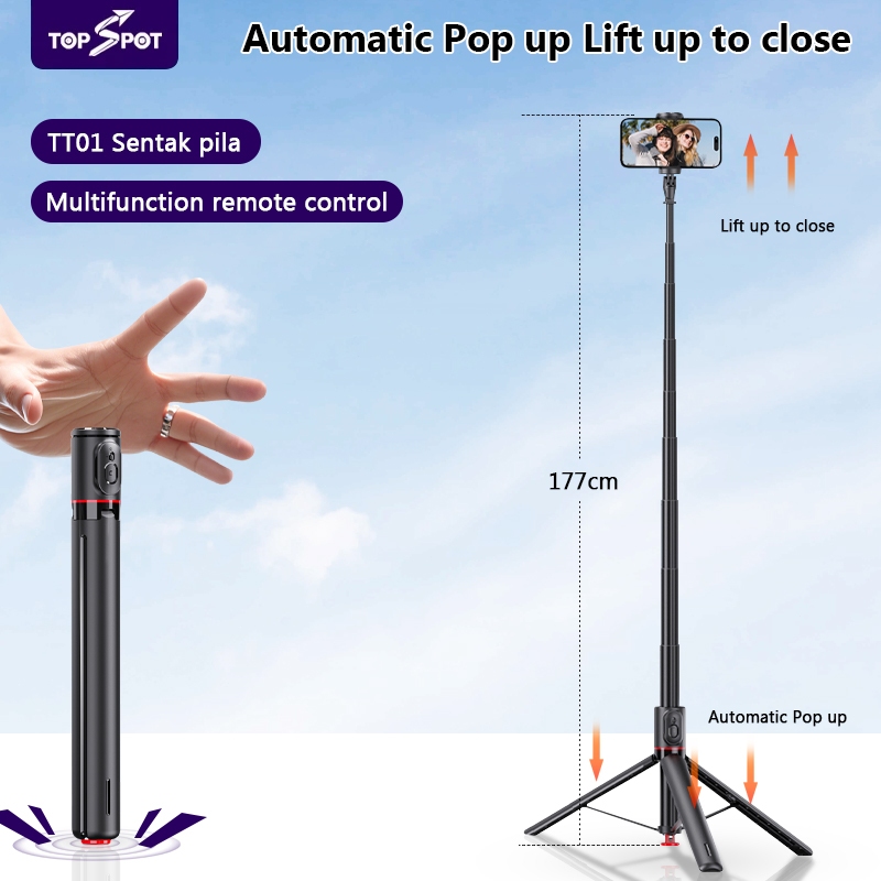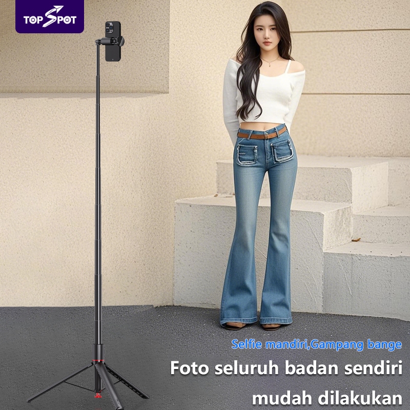 Topspot Tt01 Tongsis Satset Tripod Bluetooth Quadpod 1.77M Konten Kreator Tripod Portable Fill Light Selfie Stick Blueto