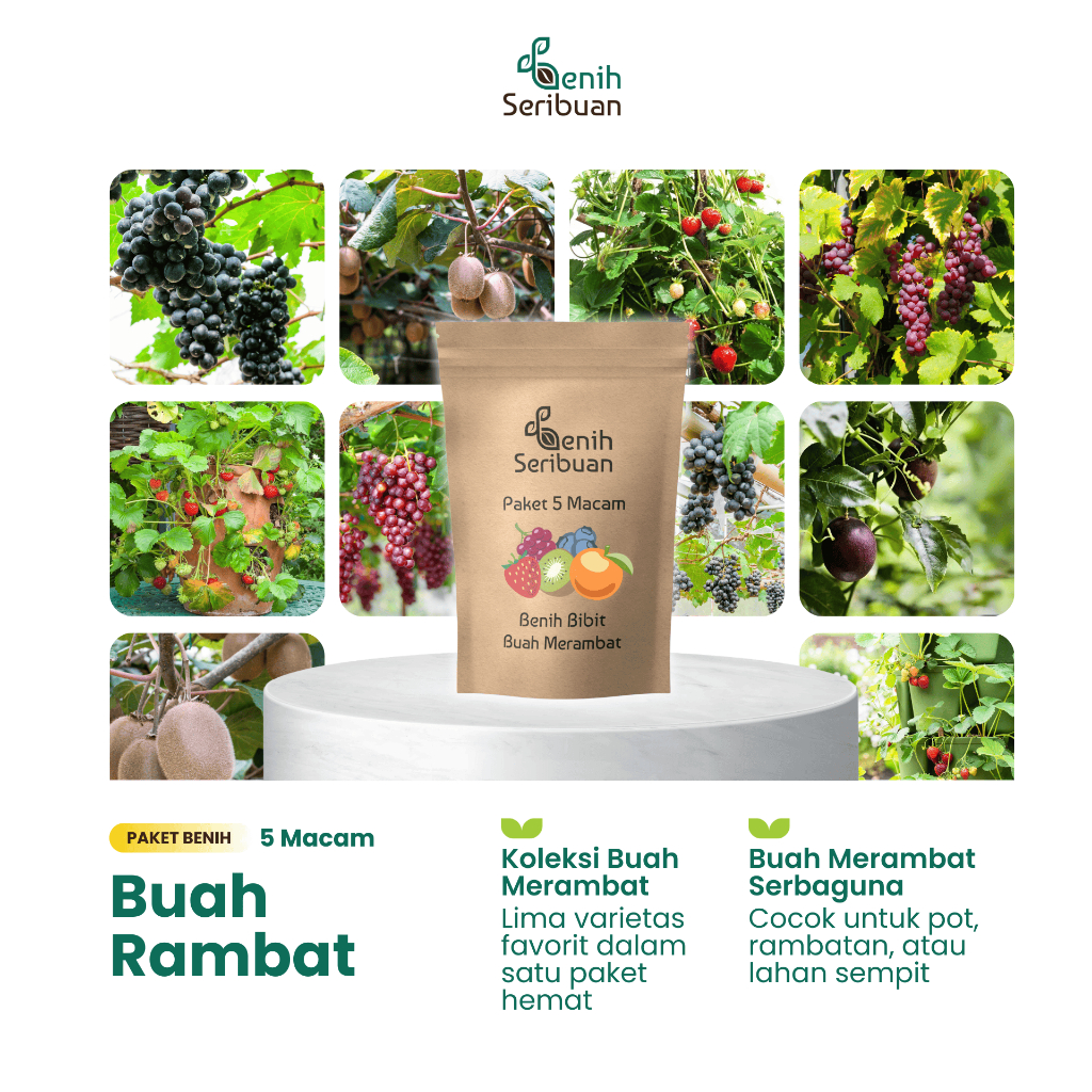 Benih Seribuan - Paket 5 Macam Benih Buah Merambat Anggur Strawberry dll