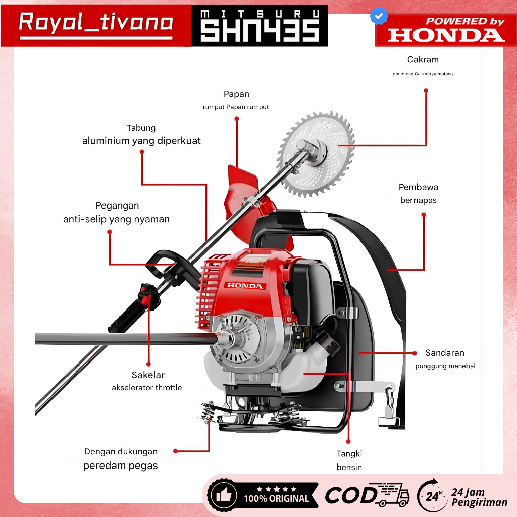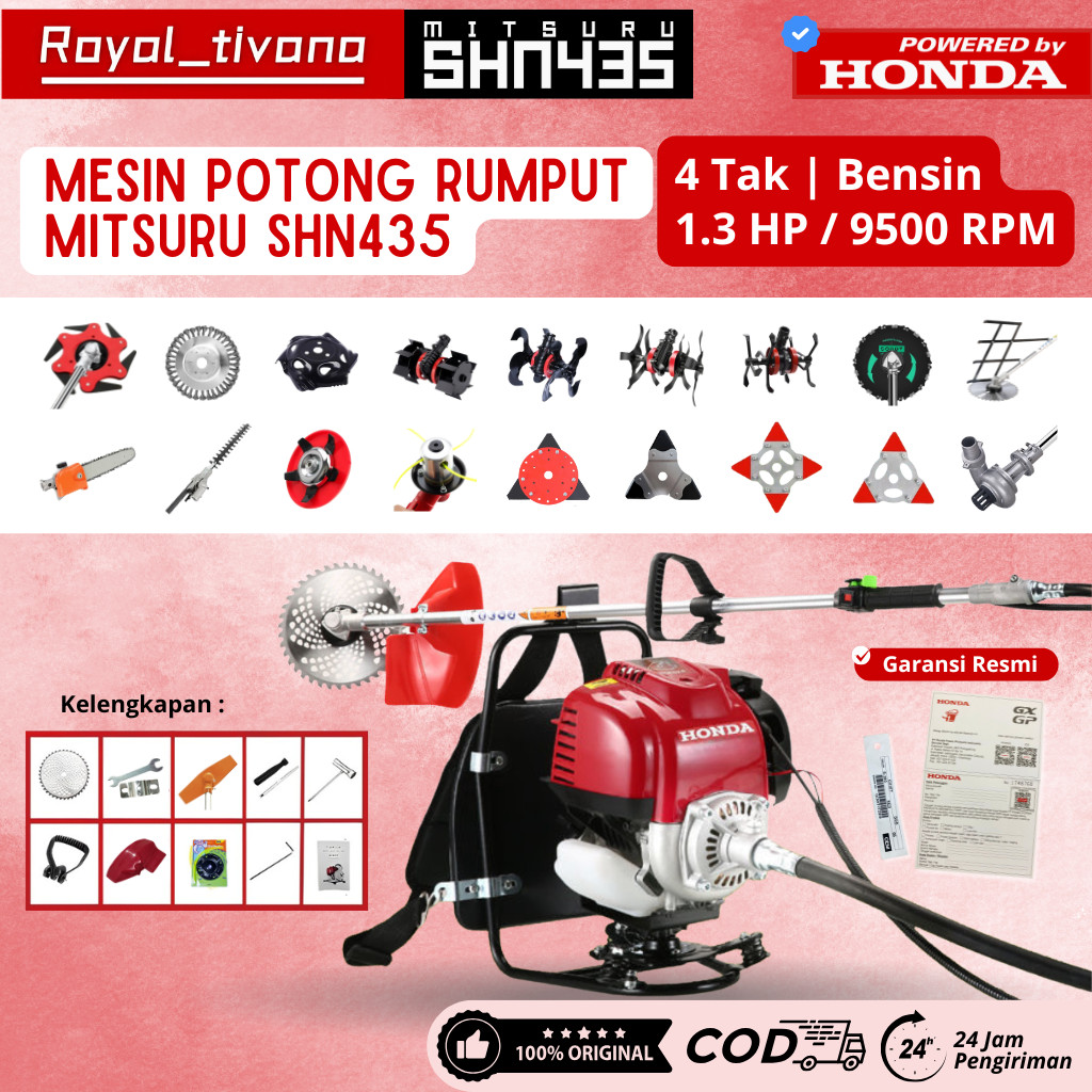 Mesin Potong Rumput MITSURU SHN435 Original 4 Tak Brush Cutter HONDA GX-35 AS Bintang 9 Shaft 26mm | Alat Potong Babat R