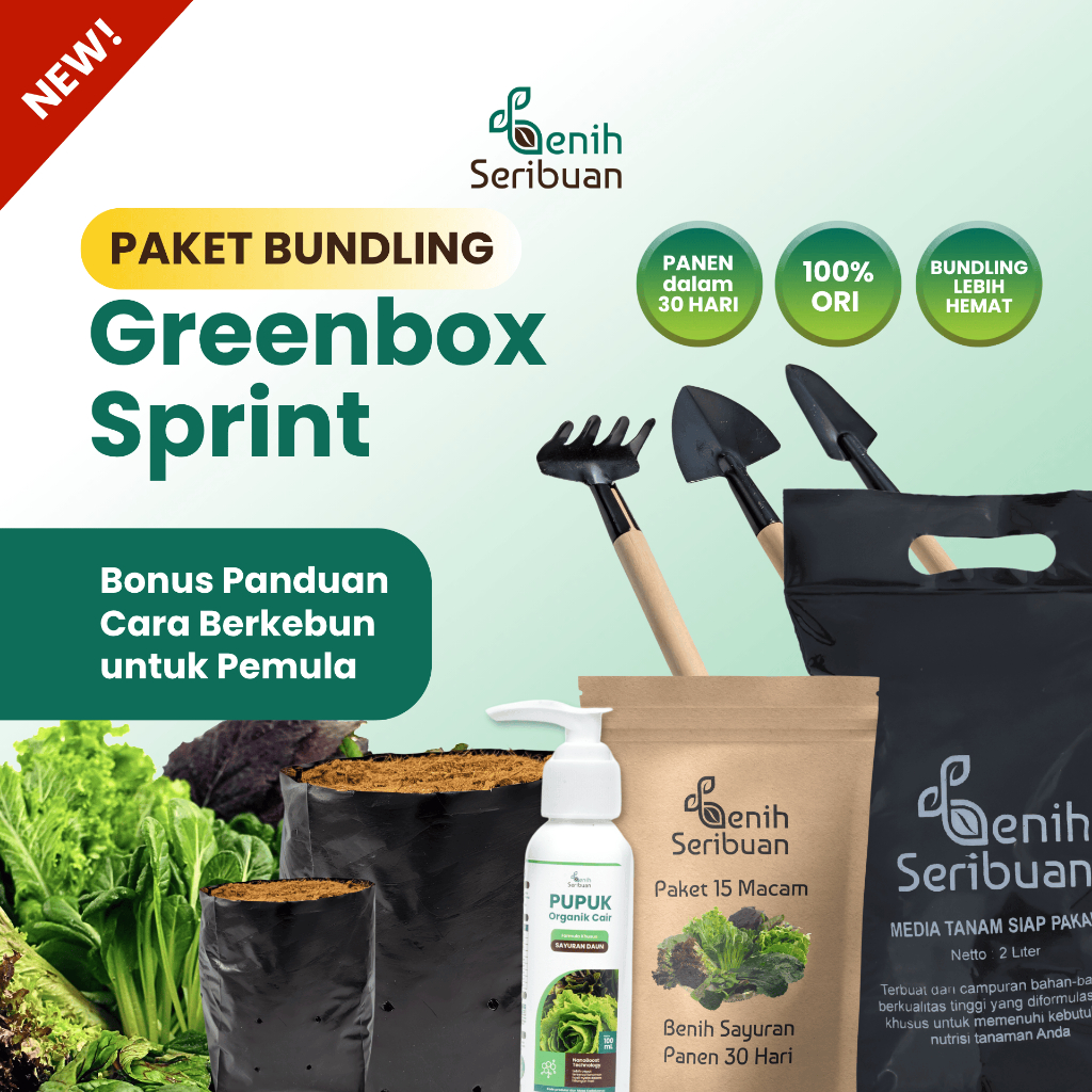 Benih Seribuan - Greenbox Sprint - Paket 15 Benih Sayur Panen 30 Hari + Media & Alat Tanam Lengkap