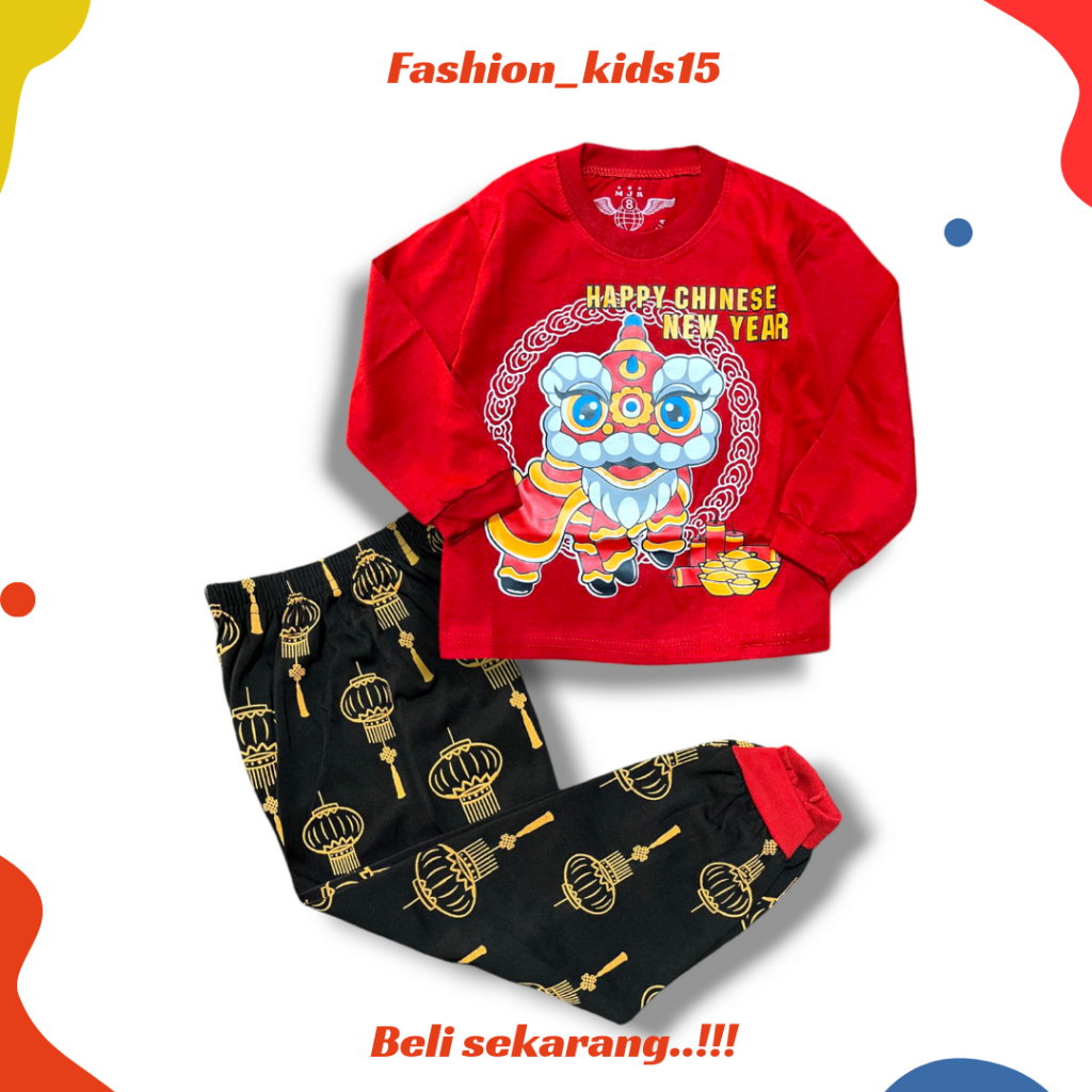 baju anak happy chinese year lengan panjang setelan imlek tahun u cina usia 1 sampai 10 tahun