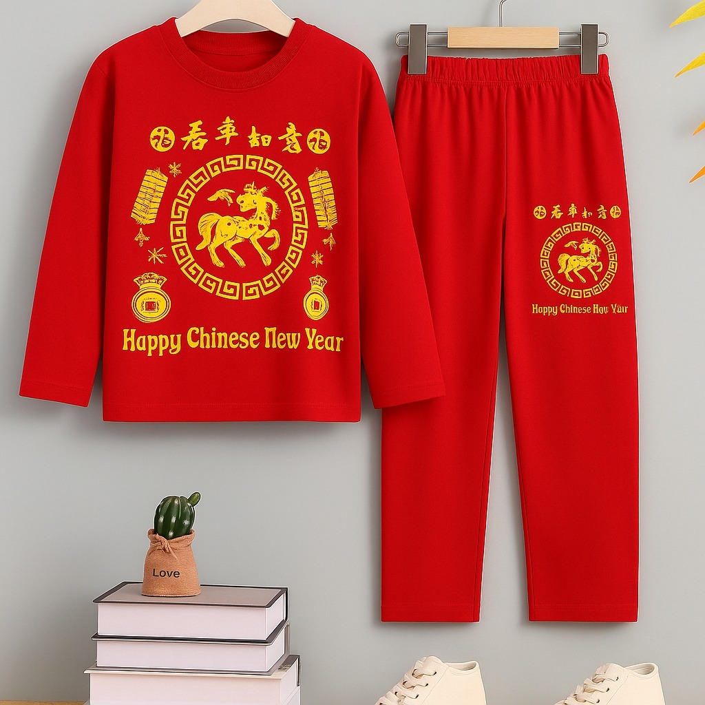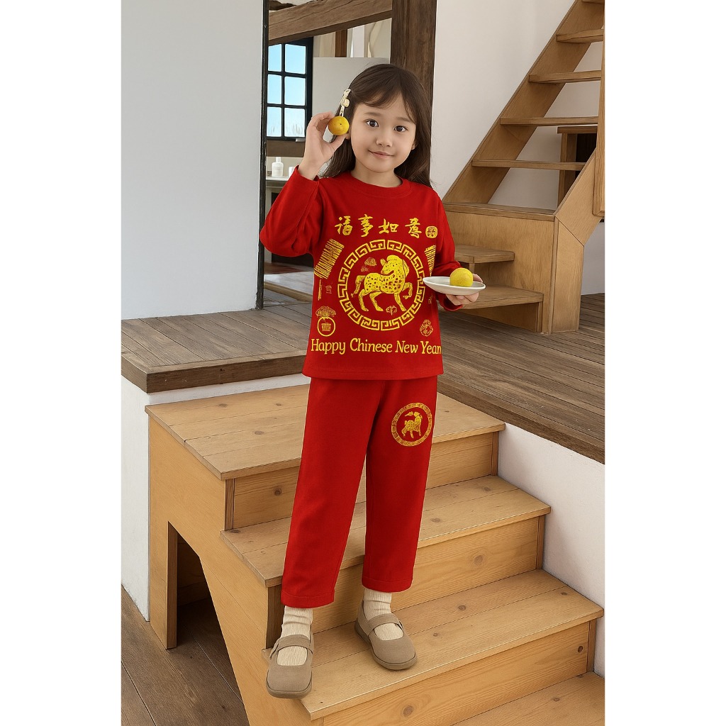 Setelan Imlek Anak Laki-Laki Perempuan Outfit Tahun u Cina Usia 1-10 Tahun BahanKatunDesainElegan