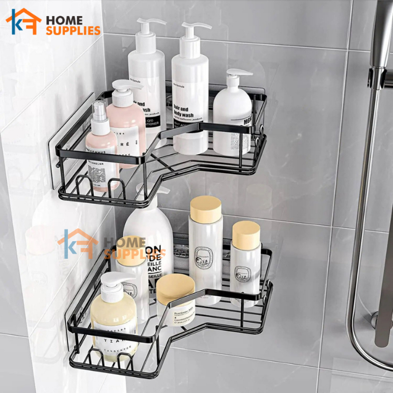 KF Rak Sudut Kamar Mandi Jumbo 1 SET Tempel Dinding Serbaguna Free Perekat / Rak Kamar Mandi Tempel Dinding Bahan Besi