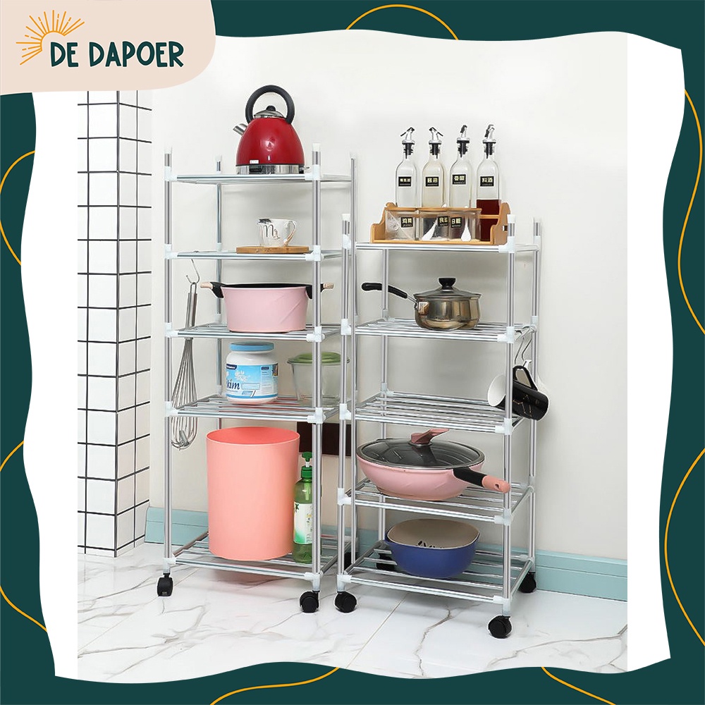 Rak Dapur Rak Panci Stainless Steel Tempat Penyimpanan Alat Masak Wajan Spatula 5 Susun