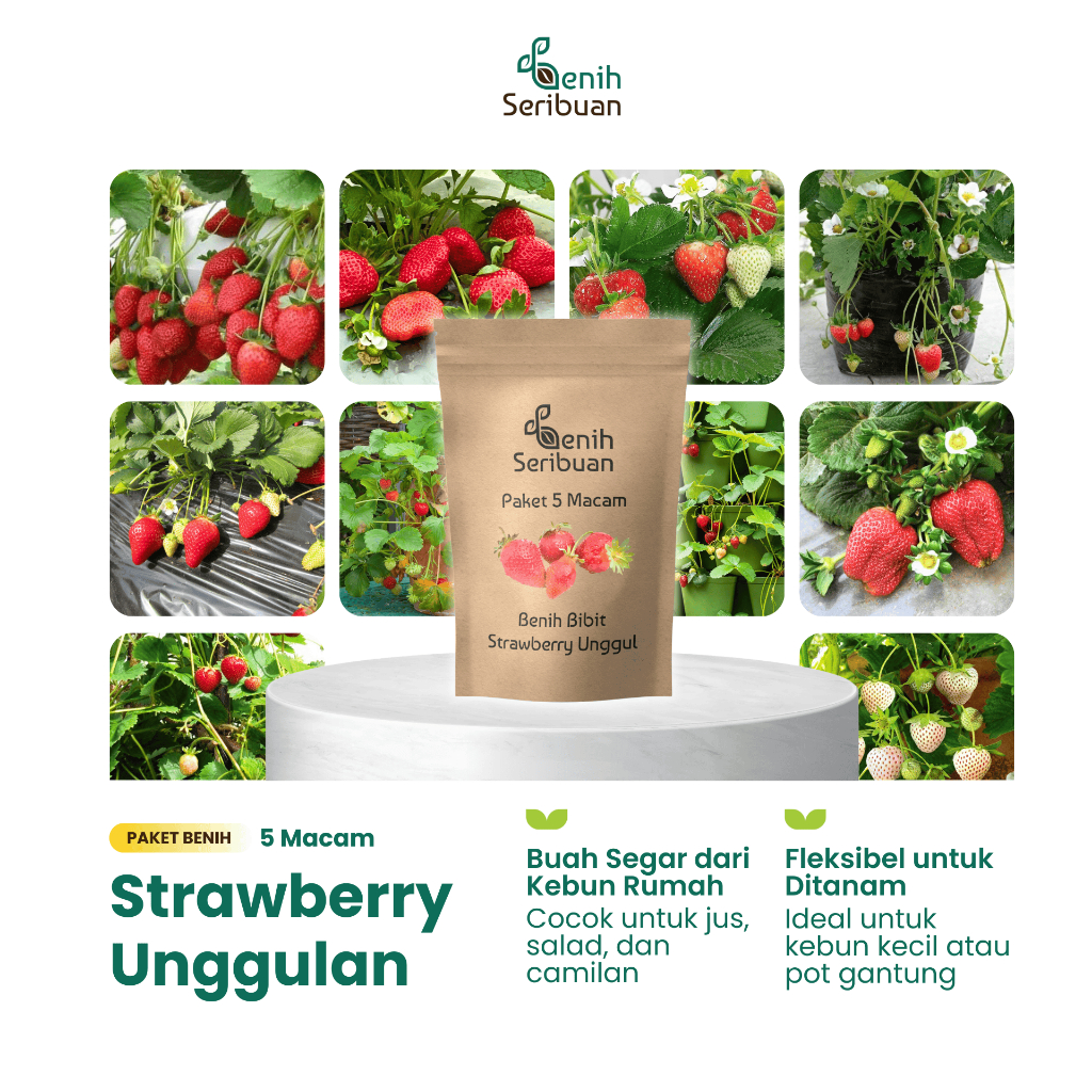 Benih Seribuan - Paket 5 Macam Benih Strawberry Buah Stroberi Unggul