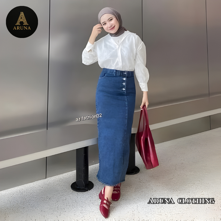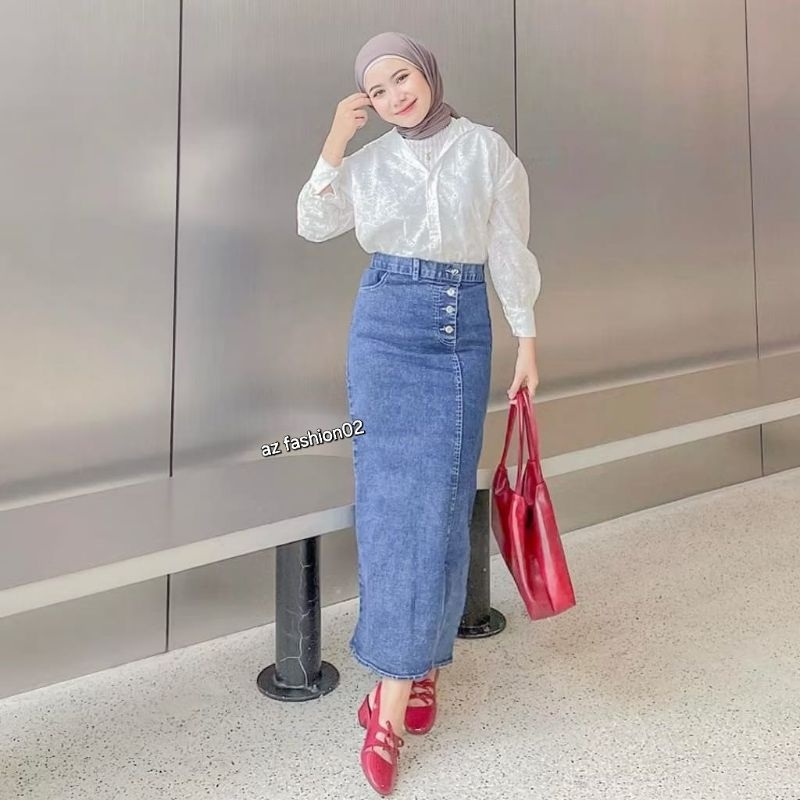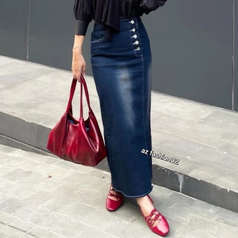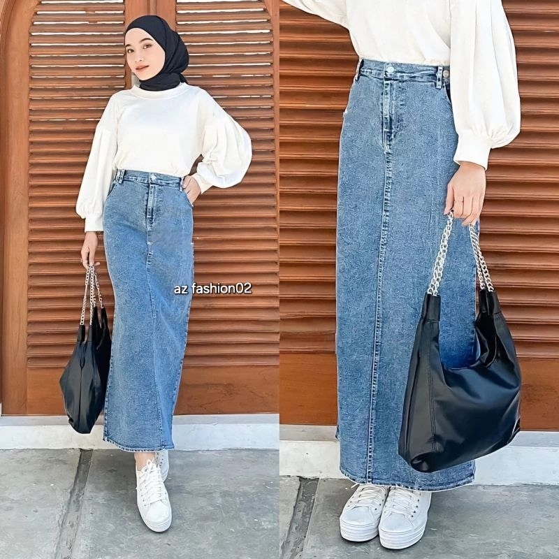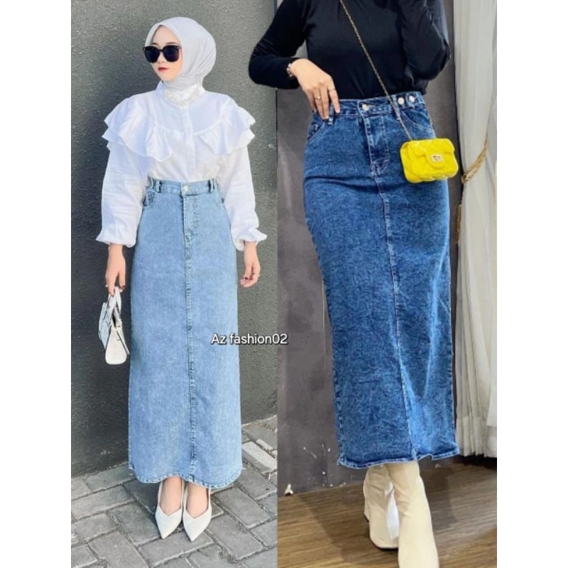 [Star] Rok Jeans Skirt Panjang Rok Jeans Rebecca Panjang Rok Jeans Highwaist Rok Jeans Wanita Kekinian dan Terbaru