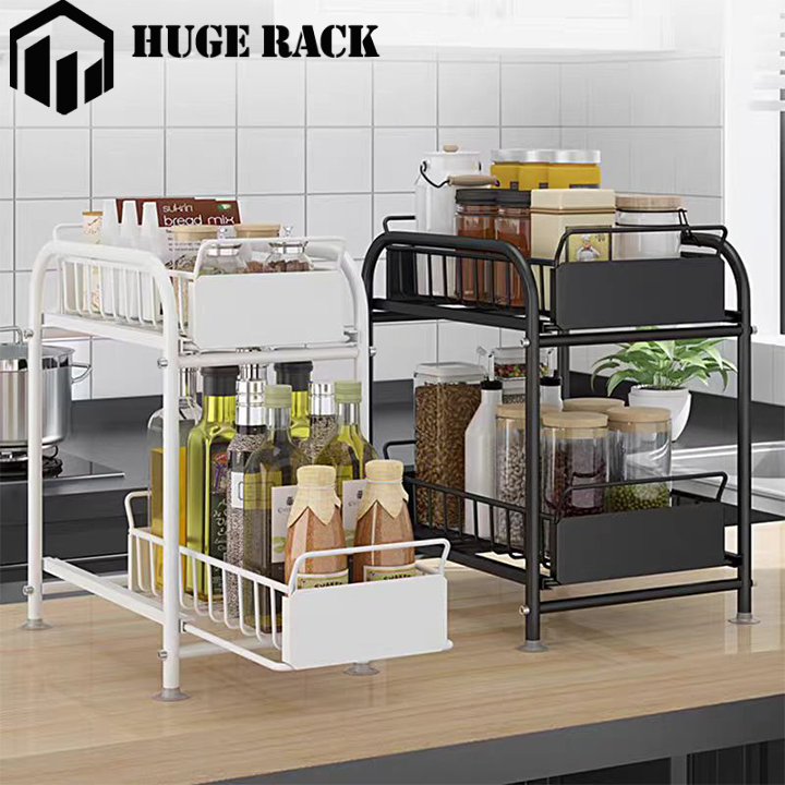 Rak Dapur Bawah Wastafel Rak Kabinet Lemari Dapur Keranjang Geser Rak Tarik Kitchen Rack Rak Penyimpanan Serbaguna