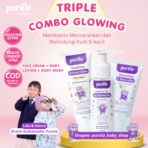 PURELA Triple Combo Glowing Skin Baby Cream - Body Lotion - Cleansing Gel
