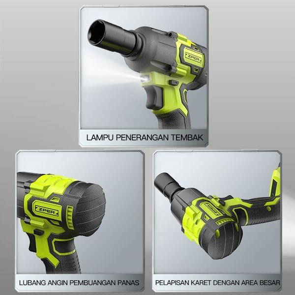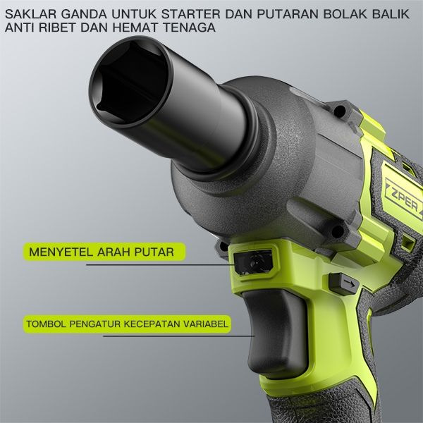 BOR IMPACT WRENCH ZPER 400N 2 1 LI 988VF MESIN IMPEK BATERAI CORDLESS PEMBUKA BAUT MULTIFUNGSI MODERN MURAH 520N ZP013