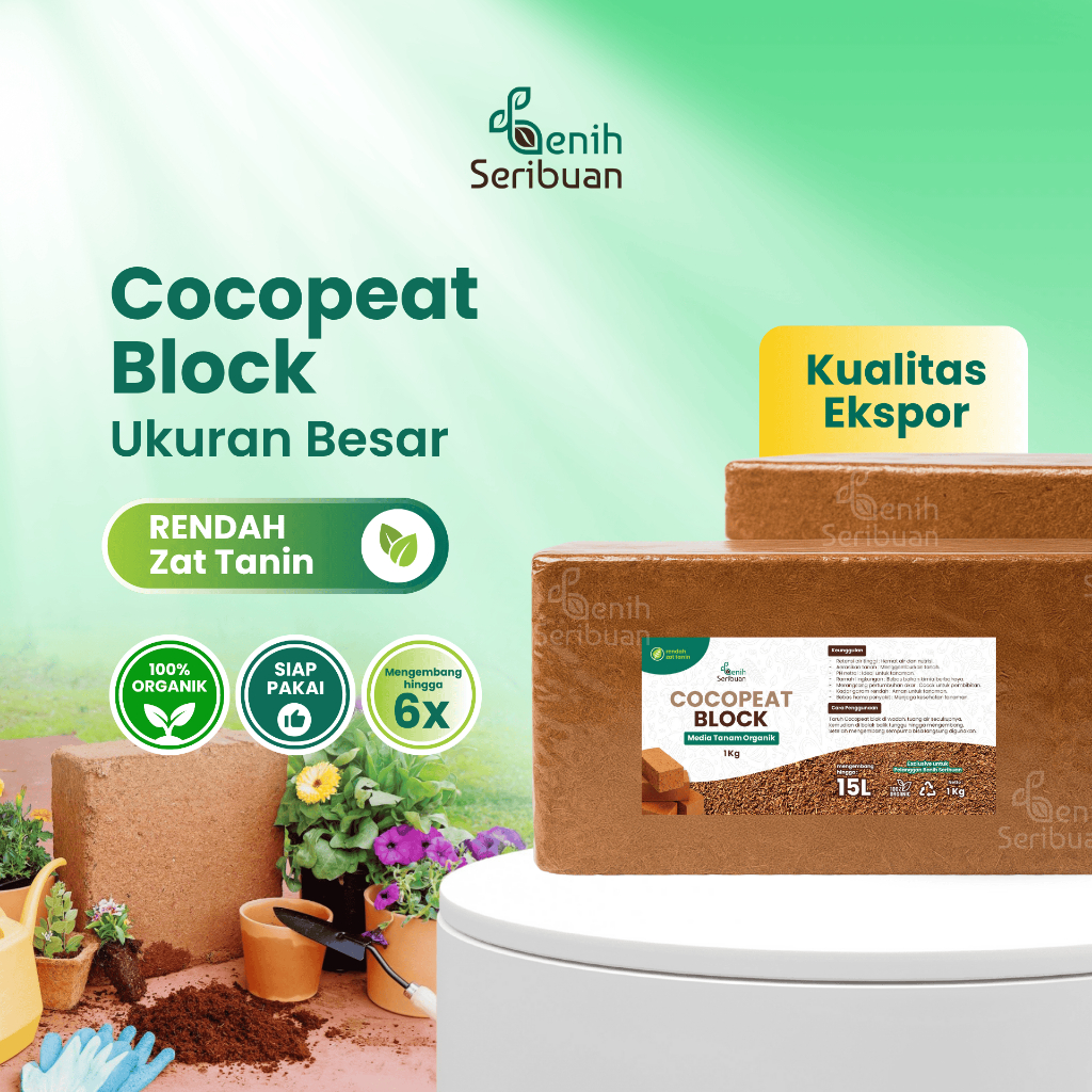 Benih Seribuan - Cocopeat Block 1 kg - Media Tanam Praktis Sabut Kelapa Halus dan Ramah Lingkungan