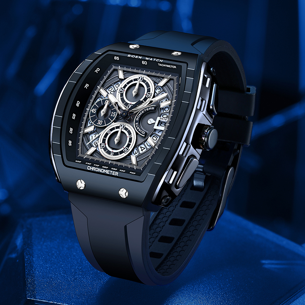 BIDEN Jam Tangan Pria Anti Air Olahraga Multifungsi Tali Silikon Pria Jam Tangan Cowok Original