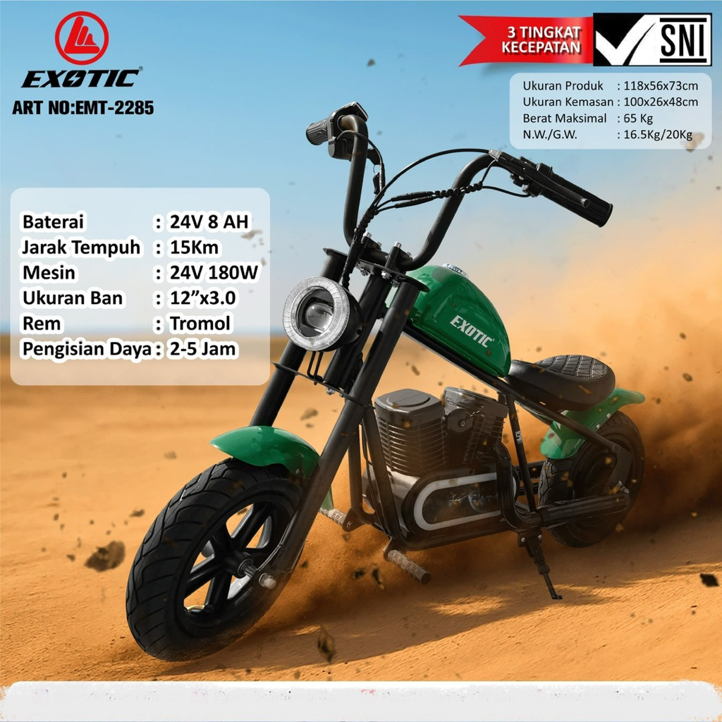 Motor Aki Anak Model Harley Exotic EMT 2285 Moge Besar Listrik Cas Casan