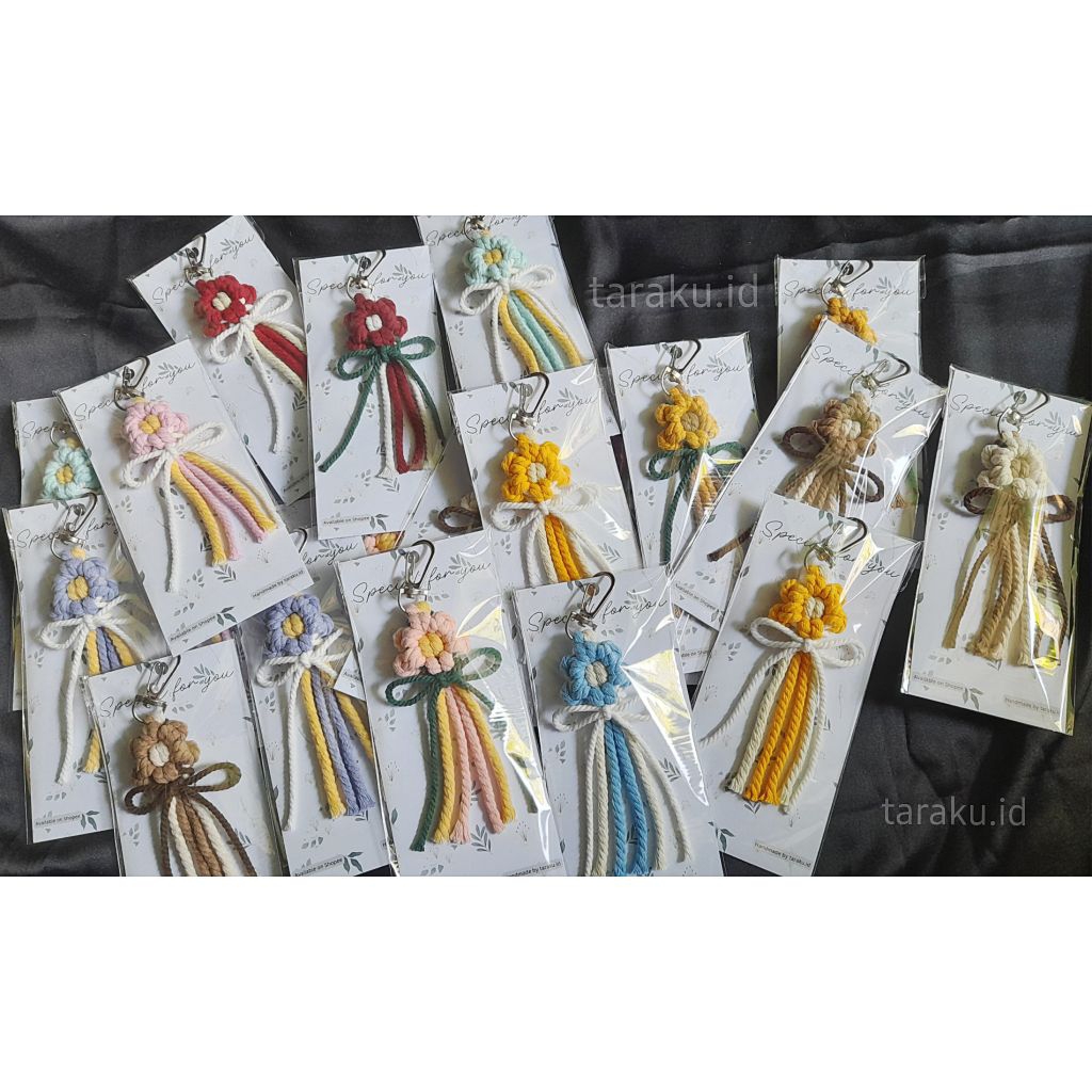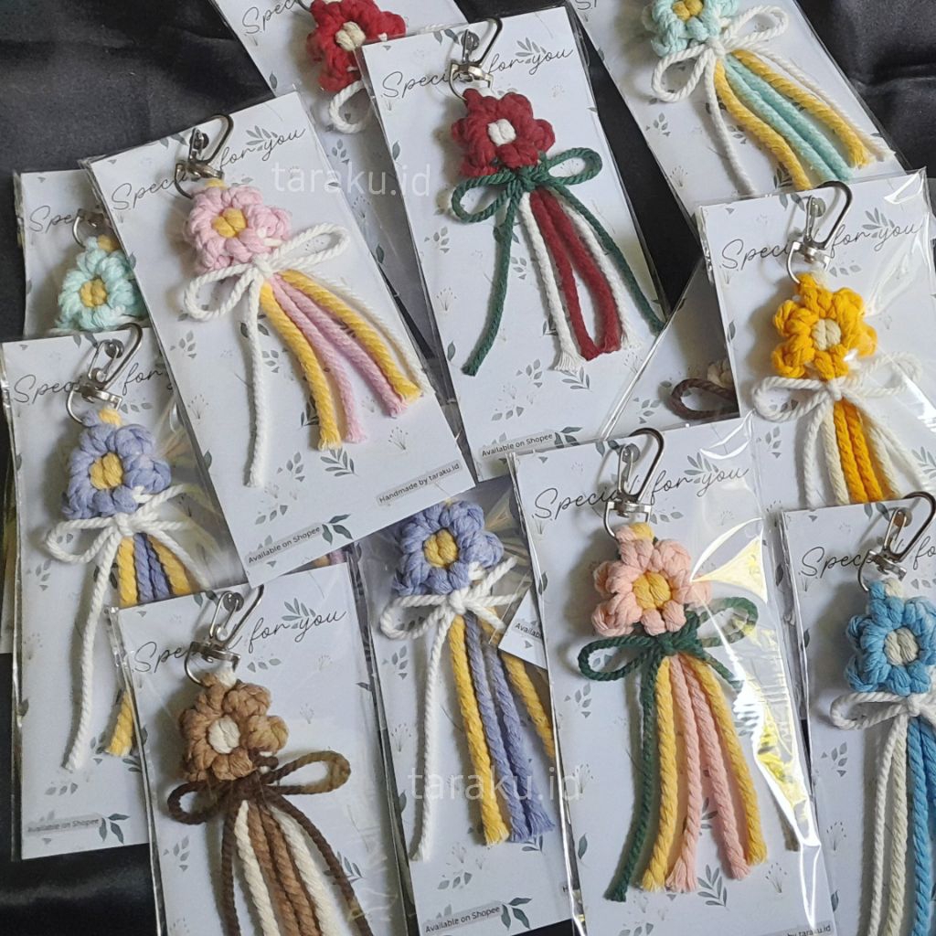 Gantungan Kunci Keychain Tali Macrame Bunga Daisy | Souvenir Hadiah Lucu Kado