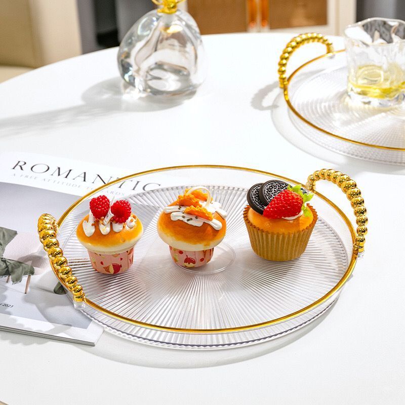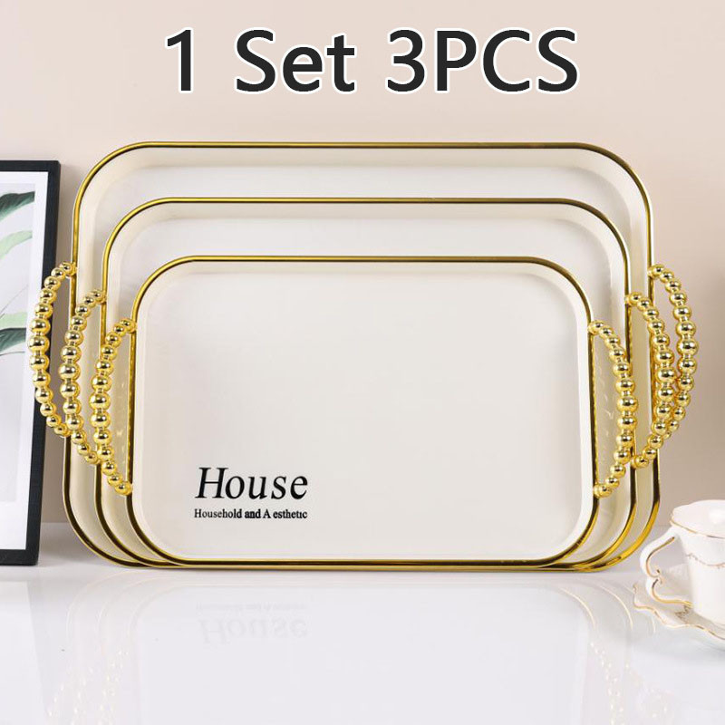 GAGALU 1 SET 3PCS Nordic Luxury Tray/Dekorasi Nampan Tray Mewah/Nampan Dengan Pegangan Handle Gold/Snack Fruit Tray