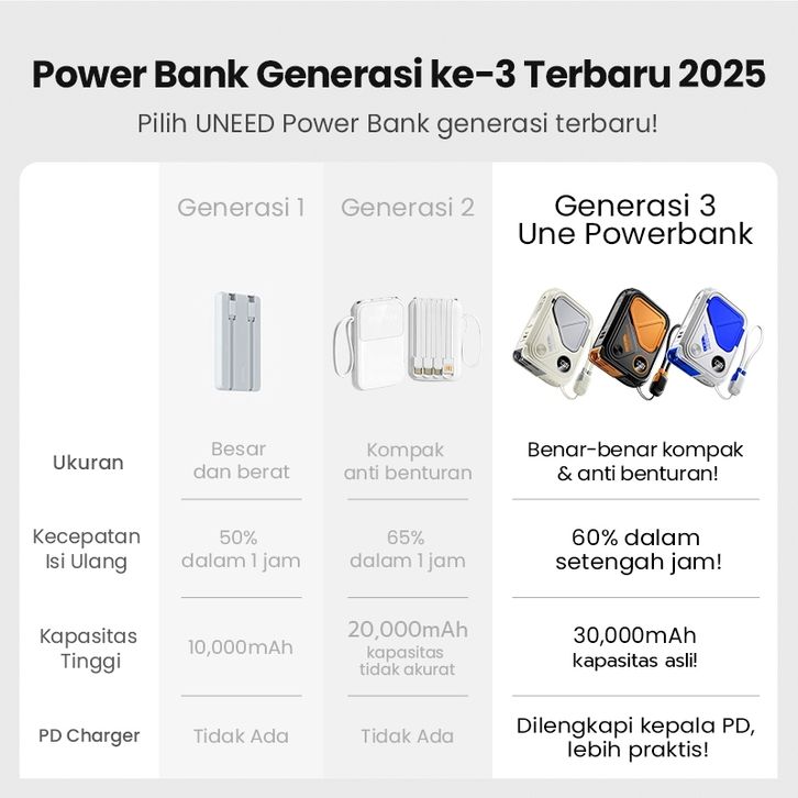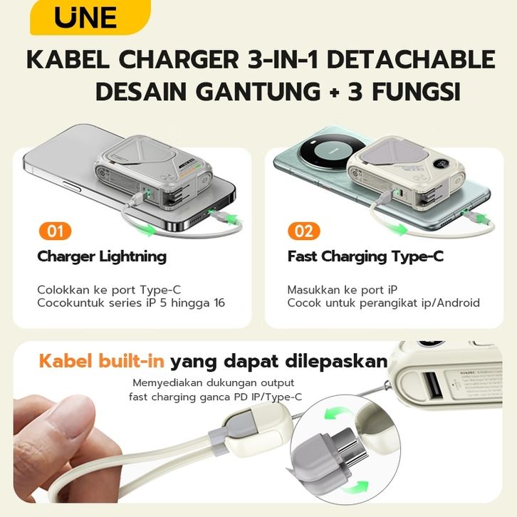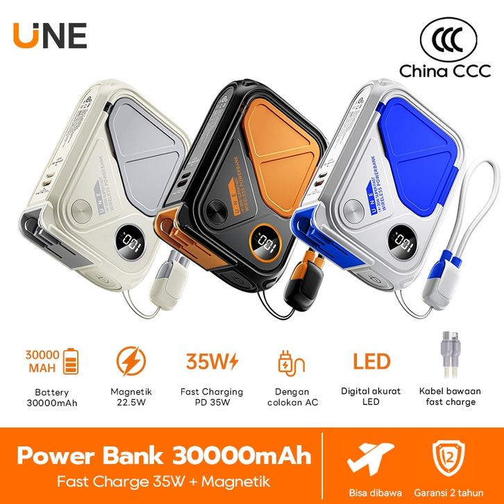 PROMO powerbank fast charging dua tahun UNE Powerbank Fast Charging Mini Wireless Magnetic 30000/20000mah PD35W with P