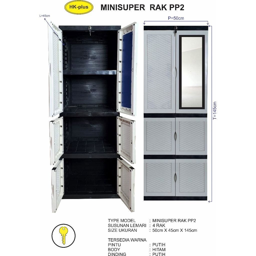 [Star] Lemari Pakaian Plastik Dengan Kaca Dan Kunci / Lemari 2 Pintu Panjang Dengan Cermin Dan Kunci