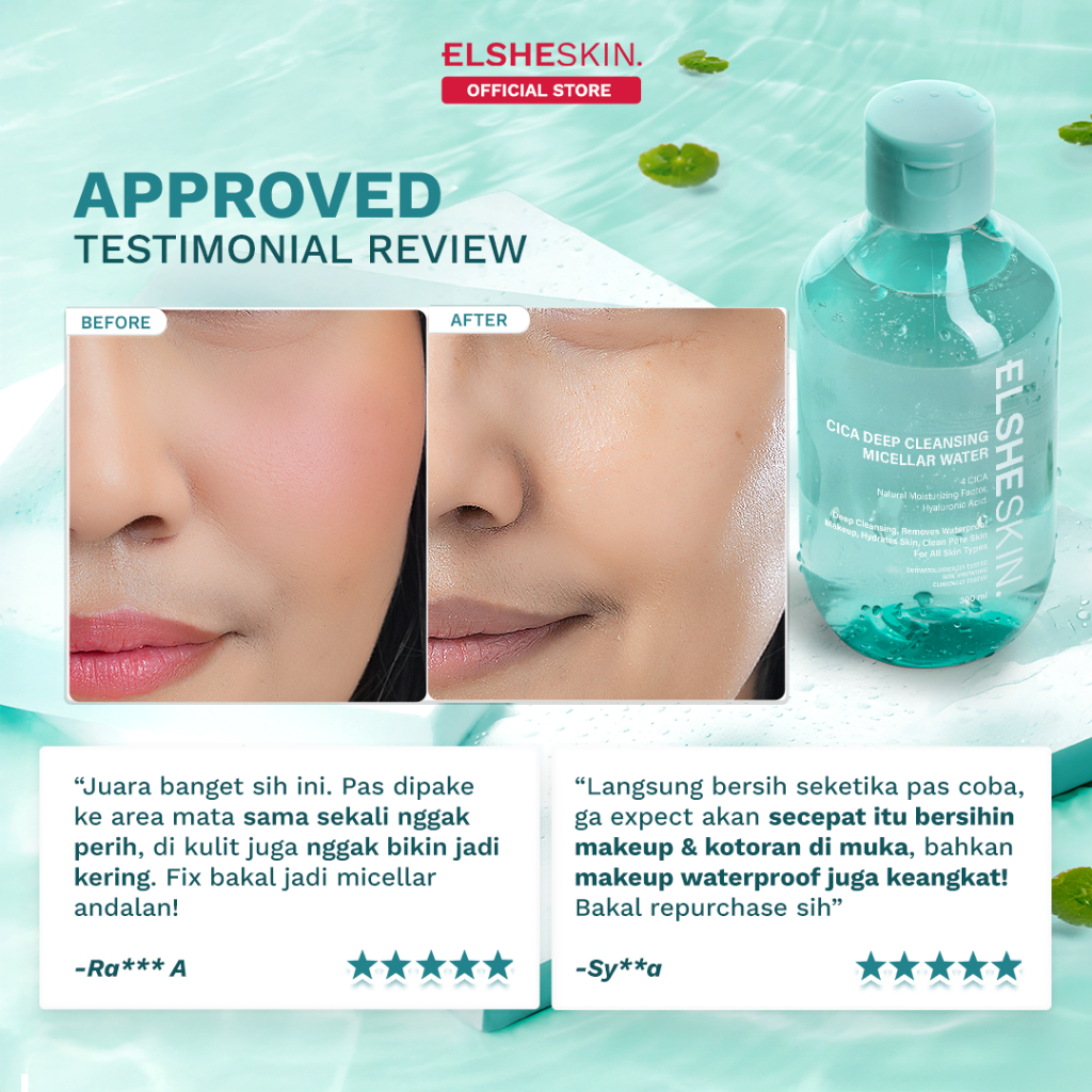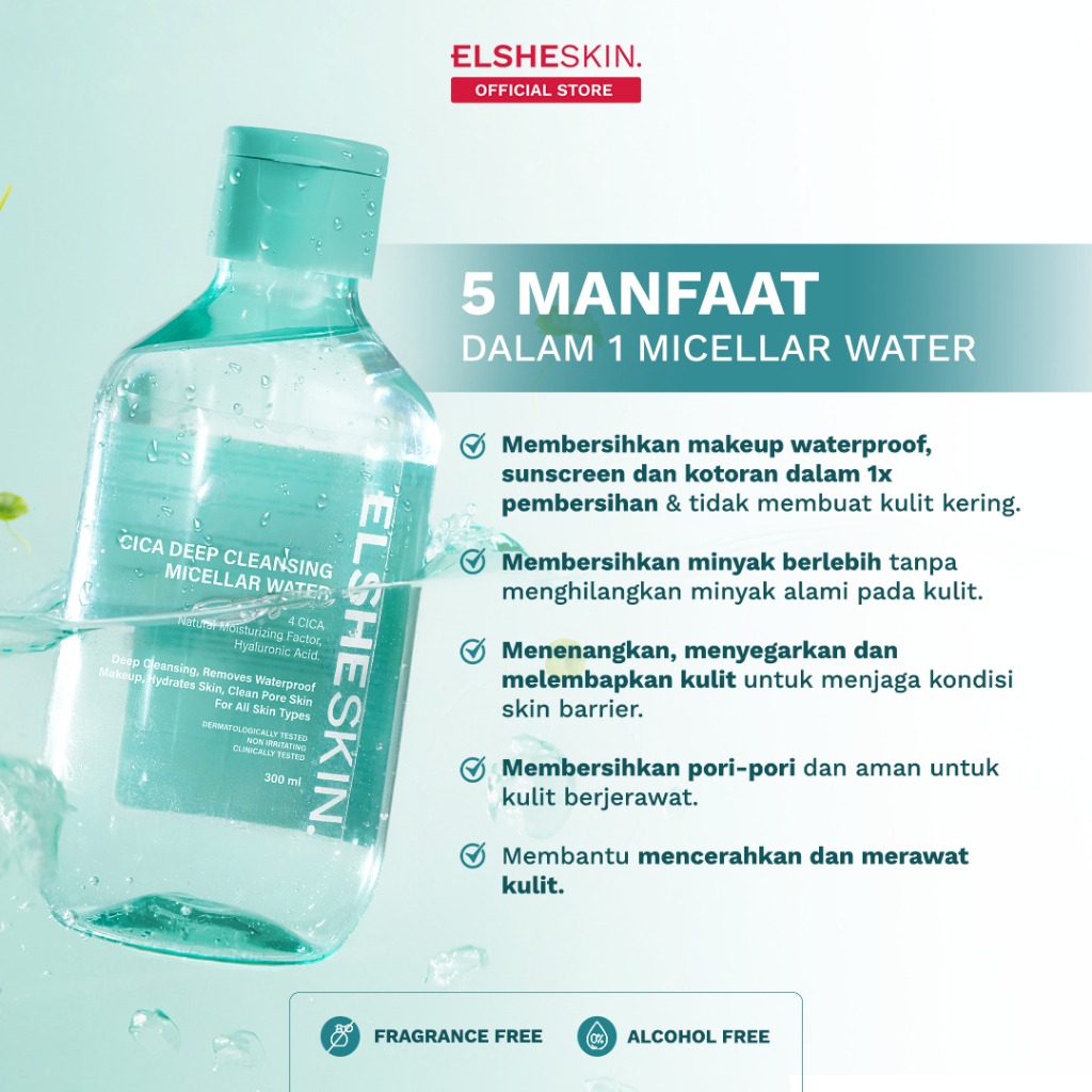 ELSHESKIN Micellar Water 300ml Cica Deep Cleansing – Pembersih Wajah & Makeup Waterproof – Aman untuk Kulit Sensitif