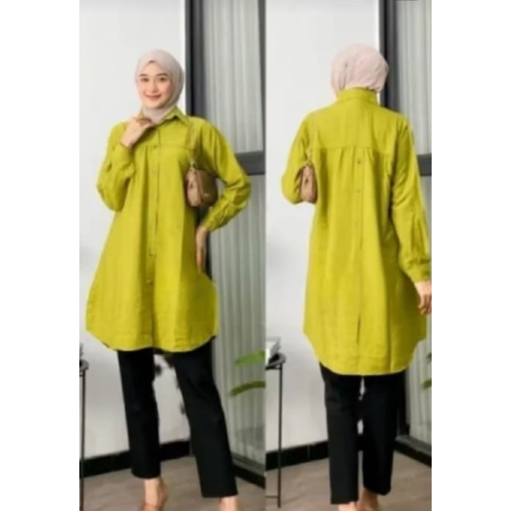 Zeva Tunik Polo Linen Anti Kusut Adem Halus Variasi Kancing Belakang