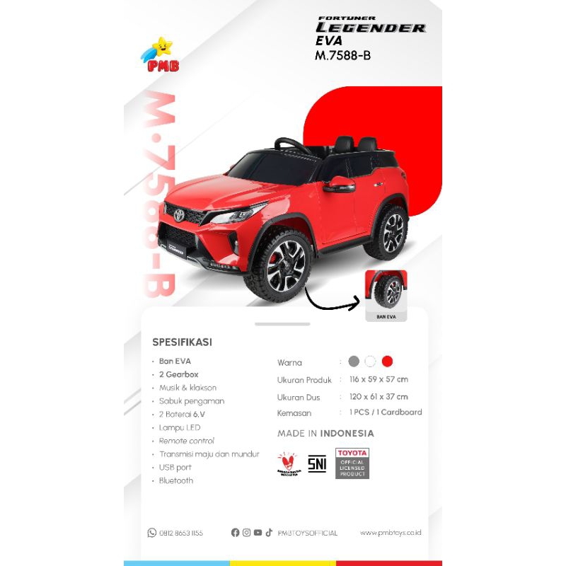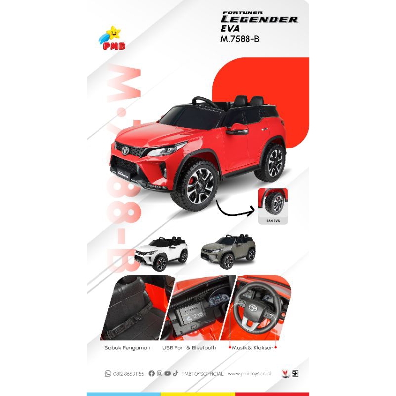 (Free pelapis ban/ karpet ) Mainan Mobil Aki Anak Toyota Fortuner Legender PMB 7588 M7588 M-7588 / M7588B 7588B Lisensi