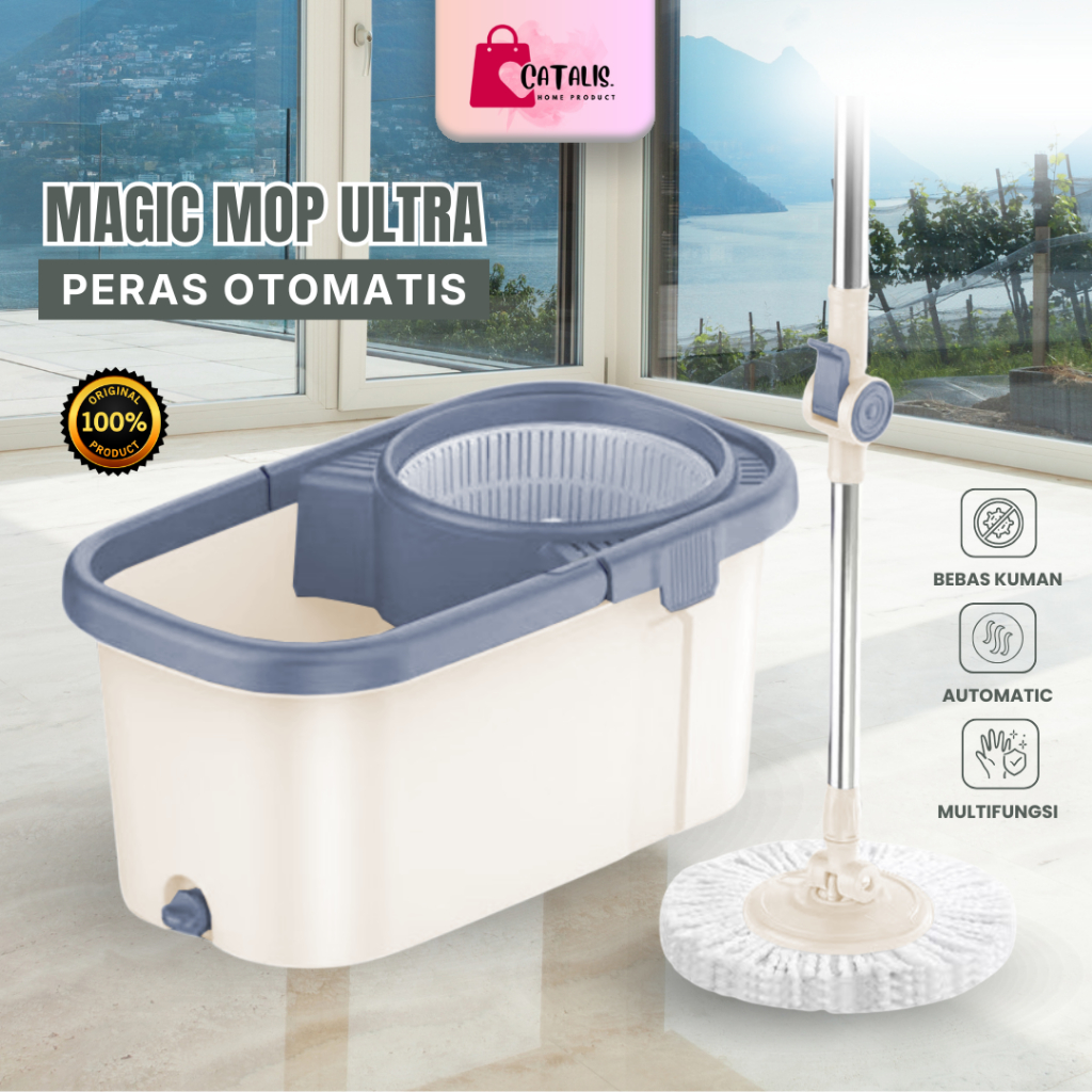 CATALIS Alat Pel Lantai Super Mop 360 Derajat Dengan ember Alat Pel Lantai 2 in 1 Pel Lantai