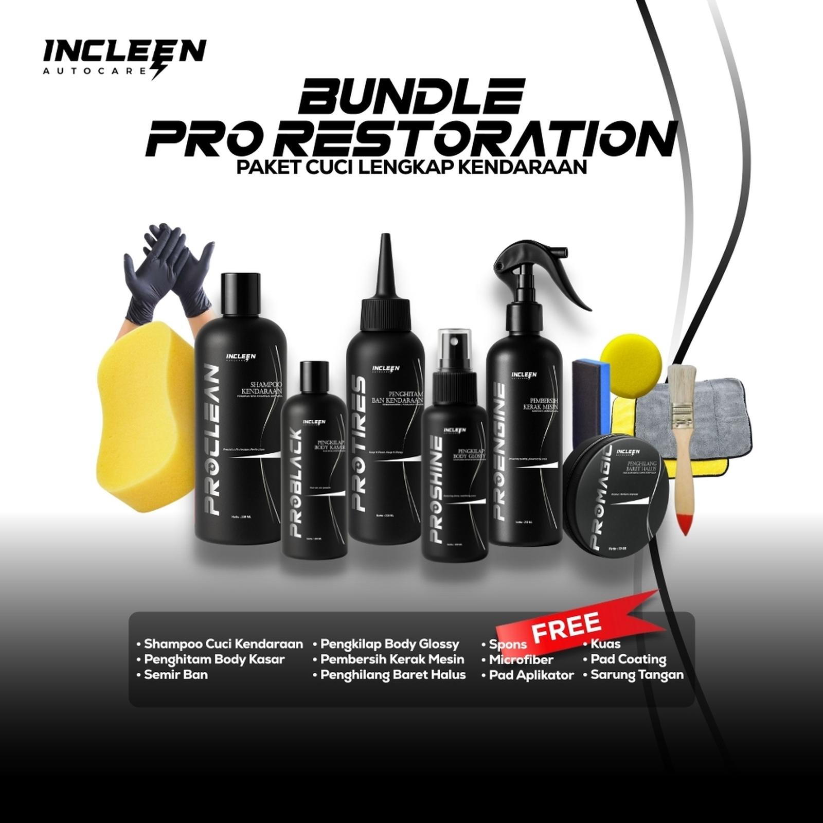 [PAKET 6 BOTOL] INCLEEN AutoCare Paket Cuci Lengkap Kendaraan - Shampoo Sabun Motor Mobil - Penghitam Pengkilap Body
