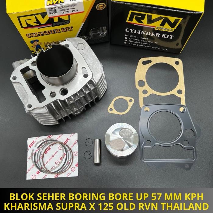 BLOK SEHER BORING PAKET BOREUP SUPRA 125 OLD KHARISMA KIRANA WAVE 125 57MM 57 MM ORIGINAL RVN THAILAND FREE PAKEN