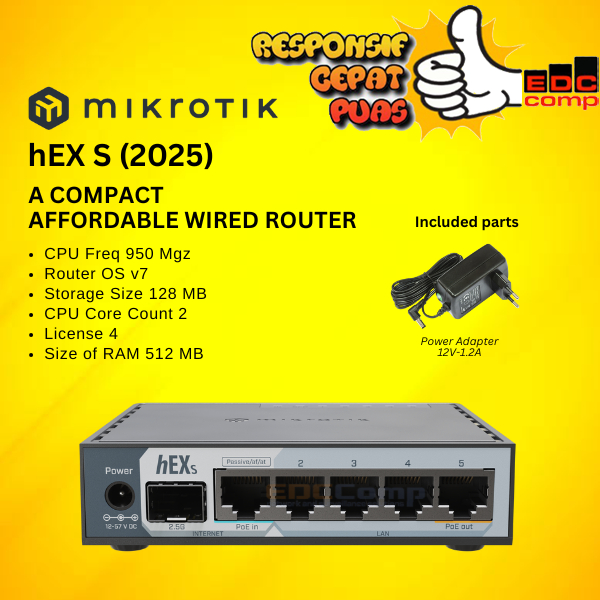 Mikrotik E60iUGS | hEX S (2025) affordable wired router with 2.5G SFP port