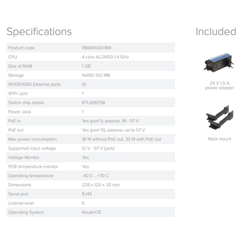 MikroTik Router Board RB4011iGS+RM 1 unit